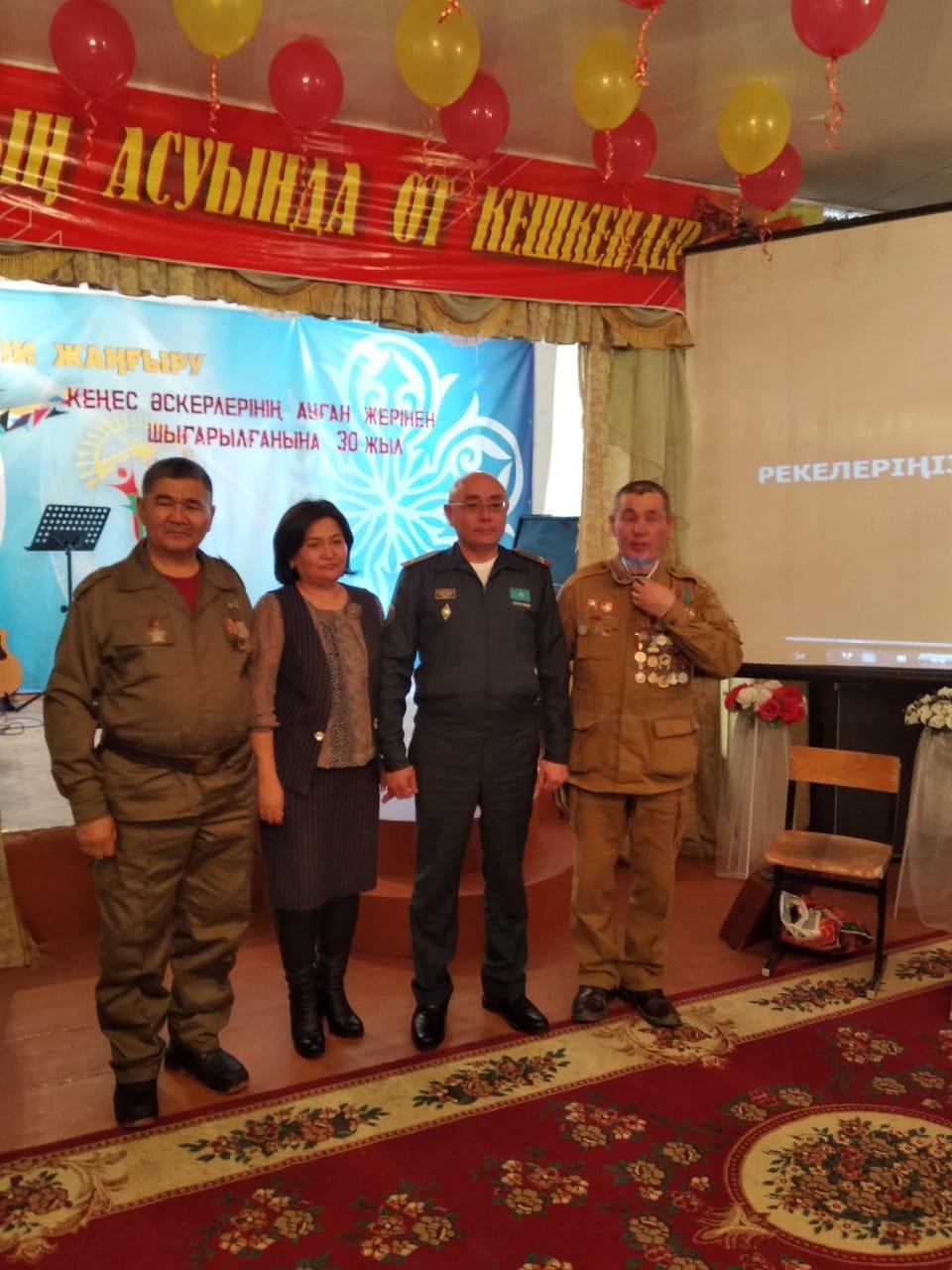 Кеңес әскерлерін Ауған жерінен шығарылғанына 30 жыл толуына орау ардагерлермен кездесу бағдарламасы » «Жамбыл облысы әкімдігінің білім басқармасы Шу ауданының білім бөлімінің «Антон Семенович Макаренко атындағы орта мектебі» коммуналдық мемлекеттік мекемесі