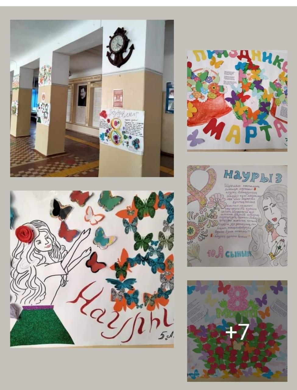 Шу аудандық білім бөлімінің А.С.Макаренко атындағы орта мектебінде 8 наурыз-Халықаралық әйелдер күні мерекесіне орай "Менің ізгі тілегім" тақырыбында сыныптардың құтықтаулары мектеп дәлізіне орналастырылды.