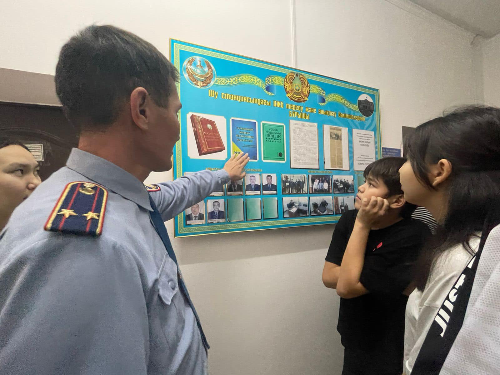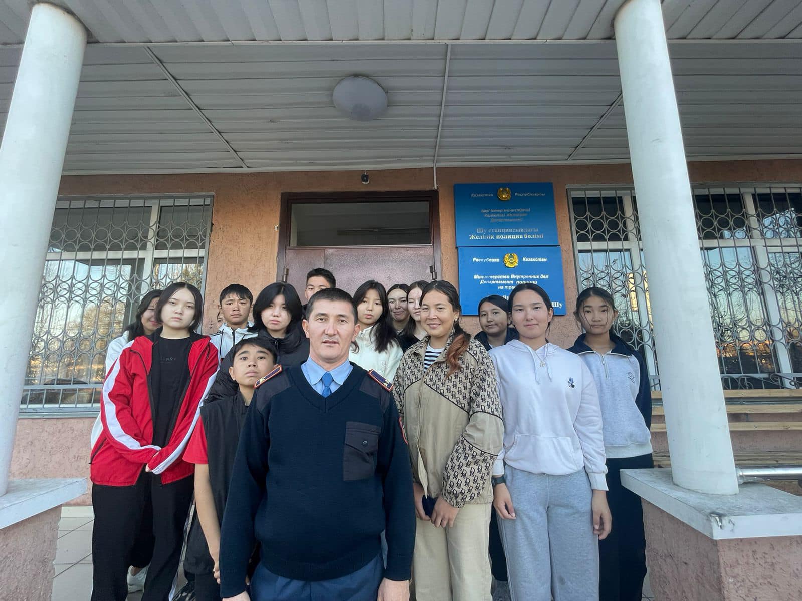 А.С.Макаренко атындағы орта мектебінің кәсіптік бағдар беру жоспарына сәйкес 21.11.2023ж 9-сынып оқушыларымен Шу станциясындағы желілік полиция бөліміне экскурсия ұйымдастырылды.