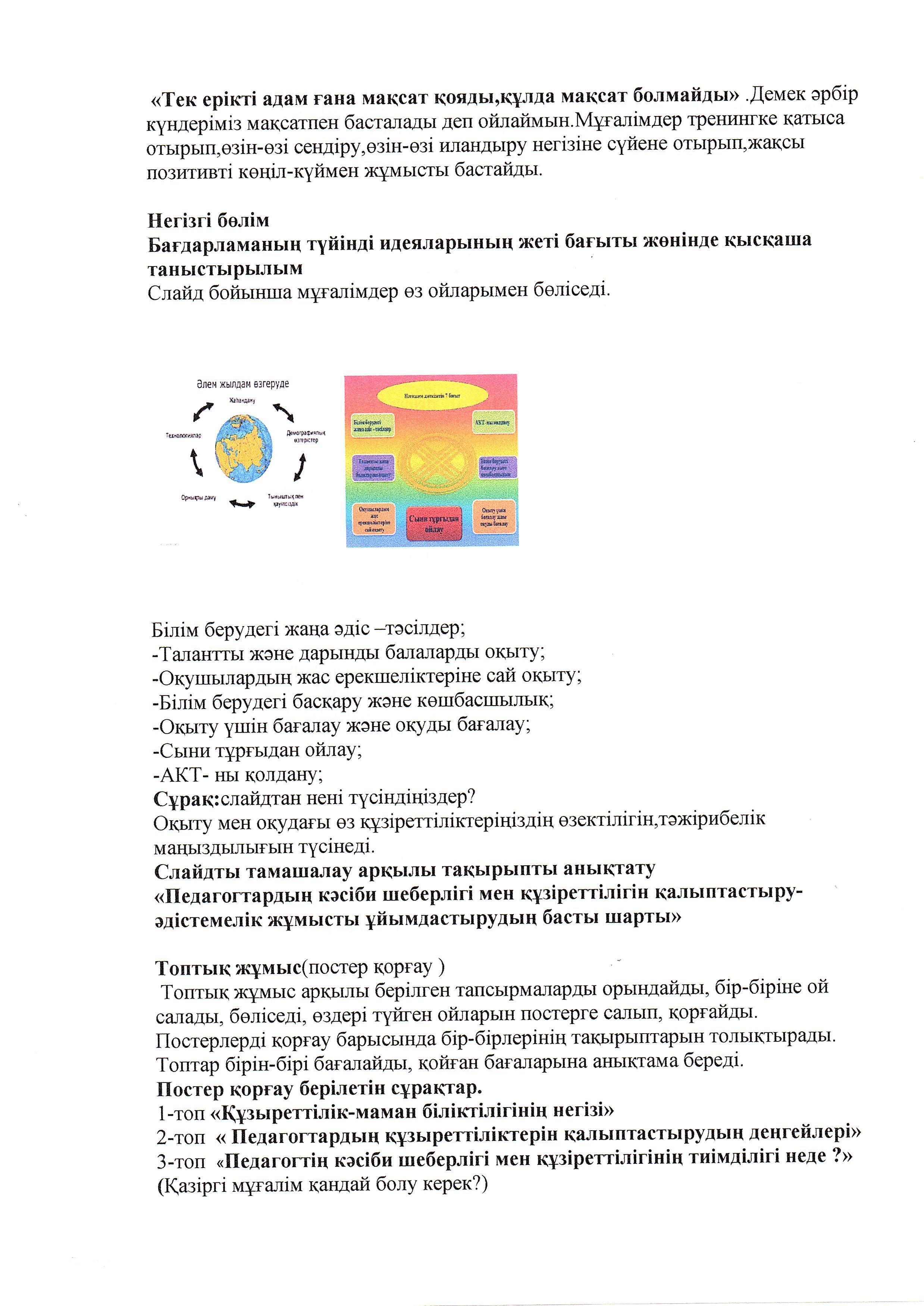 "Педагогтардың кәсіби шеберлігі мен құзіреттілігін қалыптастыру" » «Жамбыл облысы әкімдігінің білім басқармасы Шу ауданының білім бөлімінің «Антон Семенович Макаренко атындағы орта мектебі» коммуналдық мемлекеттік мекемесі