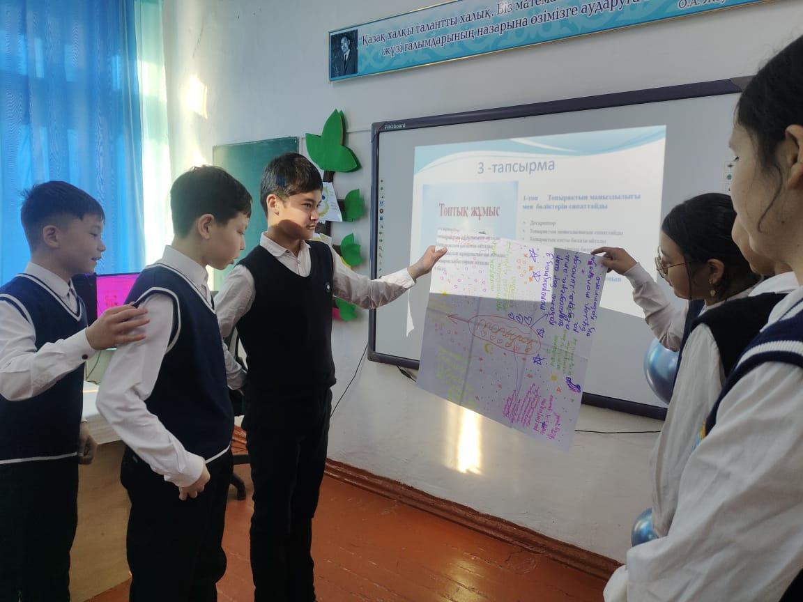 "Жас географтар" тақырыбында 7 сыныптар арасында сайыс сабақ өткізді.Сайыс барысында екі сынып ойларын ортаға салып,алғырлыққа,тапқырлыққа және де тез ойланып, бір-бірлерімен білімдерімен сынасты.
