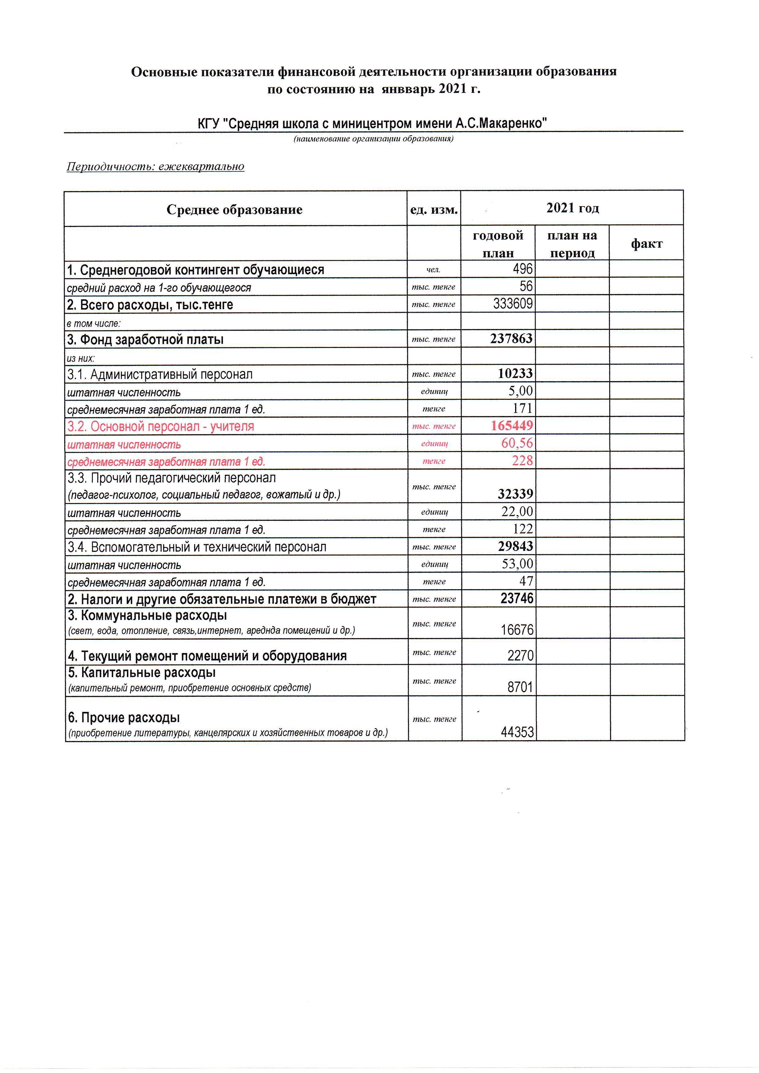 Ашық бюджет » «Жамбыл облысы әкімдігінің білім басқармасы Шу ауданының білім бөлімінің «Антон Семенович Макаренко атындағы орта мектебі» коммуналдық мемлекеттік мекемесі