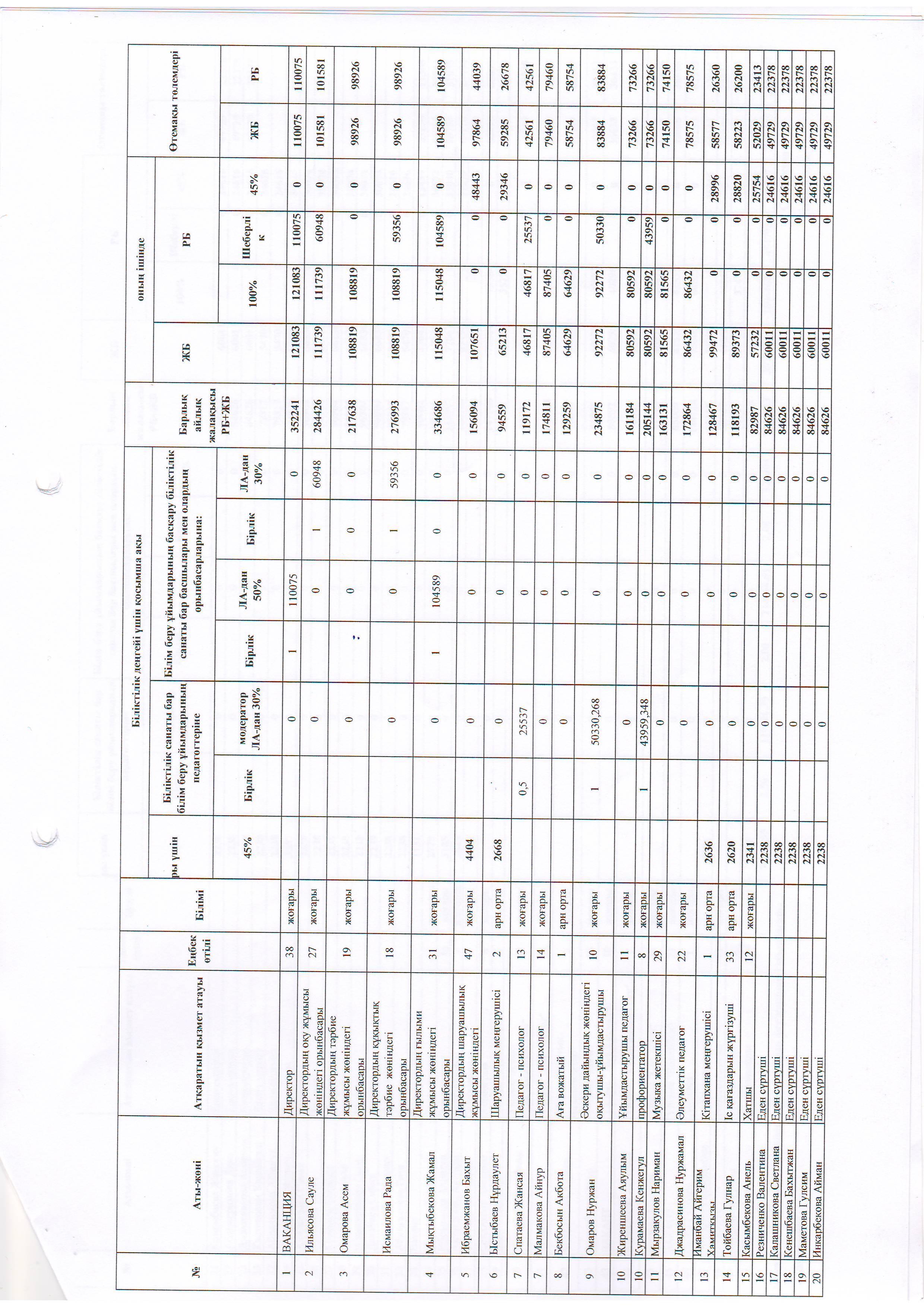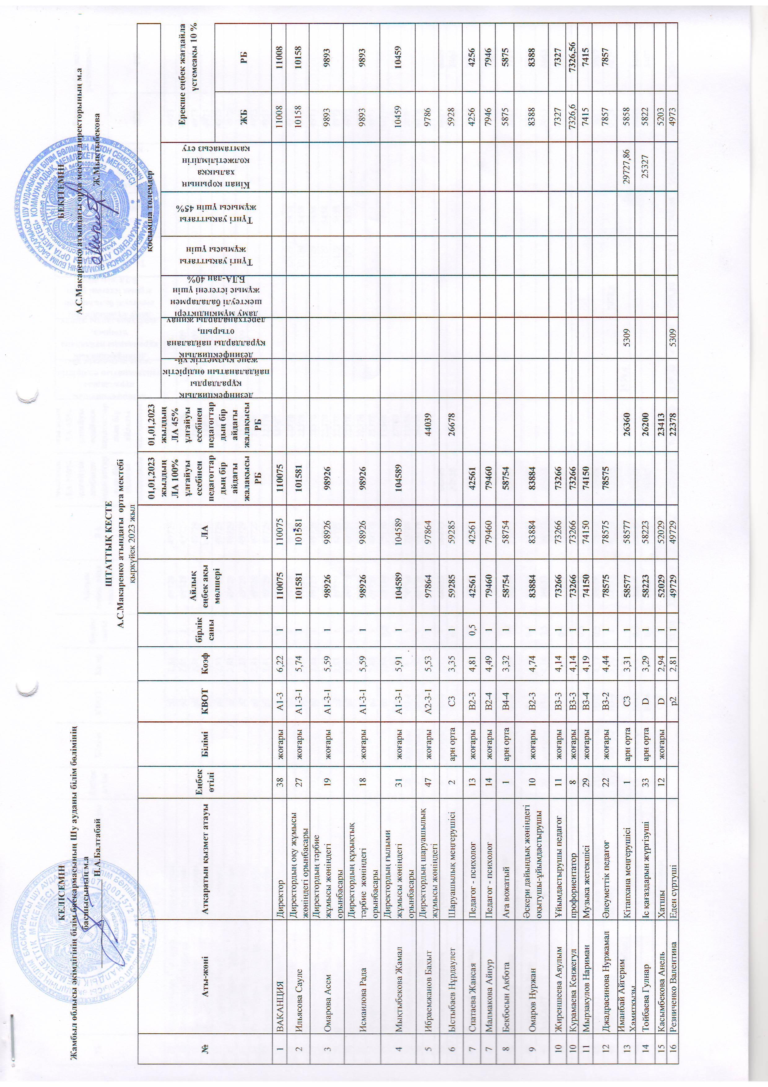 А.С.Макаренко атындағы орта мектебінің "ШТАТТЫҚ КЕСТЕСІ" » «Жамбыл облысы әкімдігінің білім басқармасы Шу ауданының білім бөлімінің «Антон Семенович Макаренко атындағы орта мектебі» коммуналдық мемлекеттік мекемесі