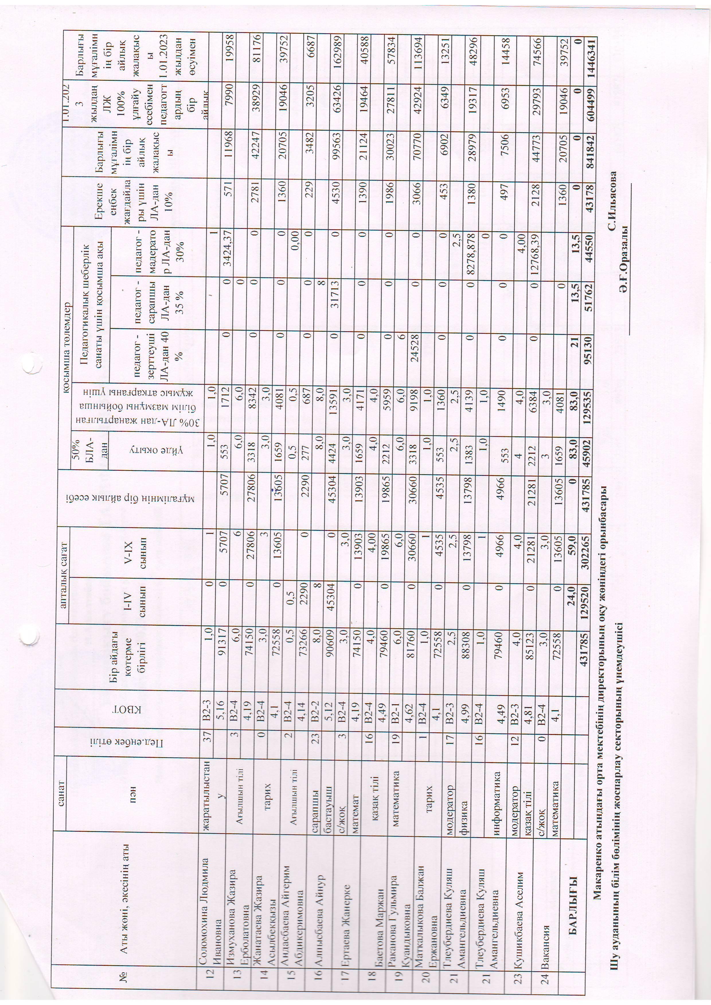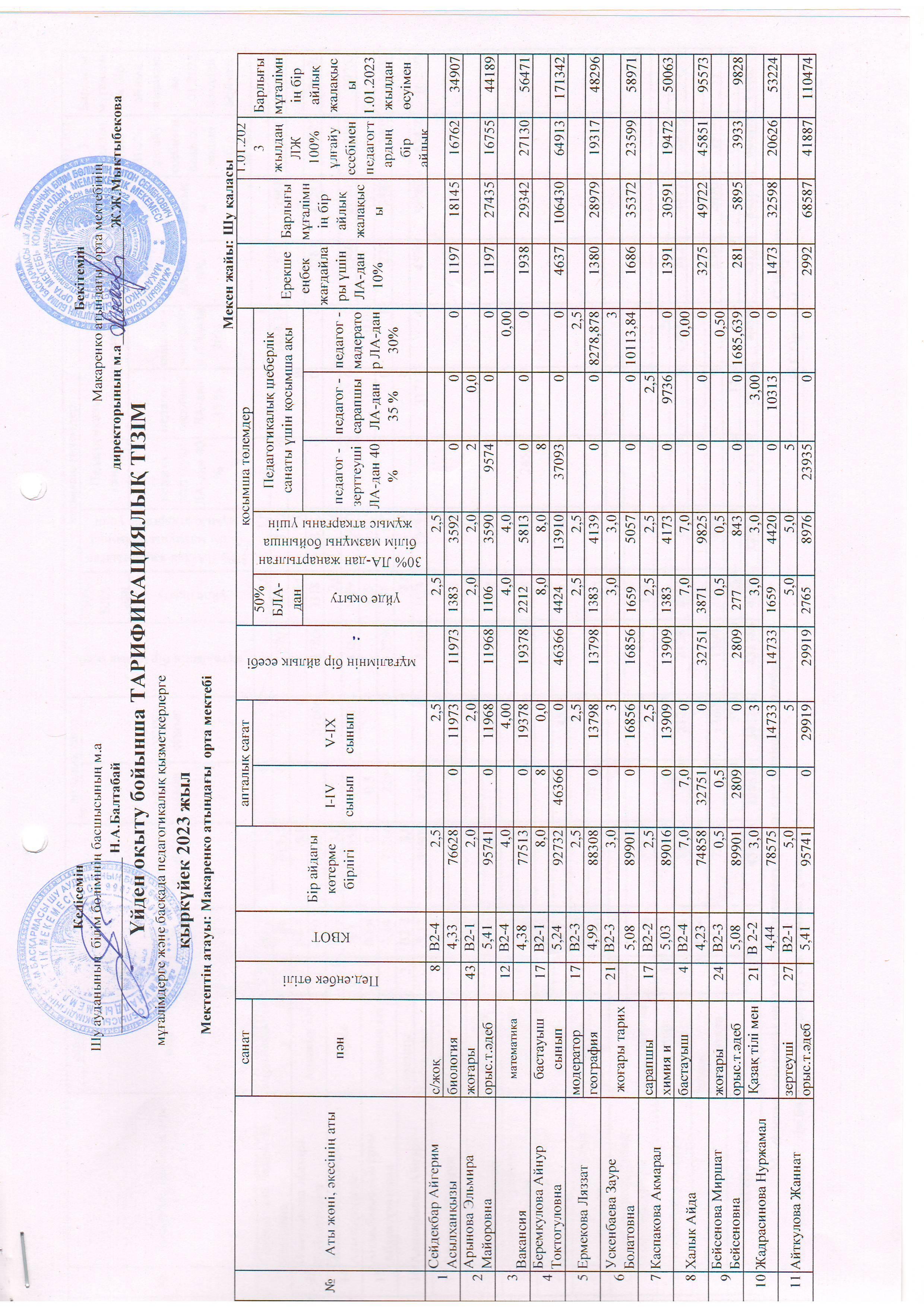 09 ноябрь 2023 0 1 2 3 4 5 А.С.Макаренко атыдағы орта мектебінің "Үйден оқыту бойынша ТАРИФИКАЦИЯЛЫҚ ТІЗІМІ"