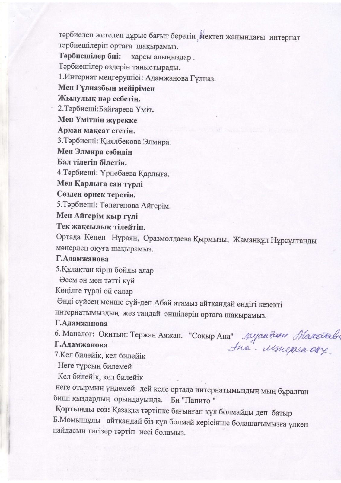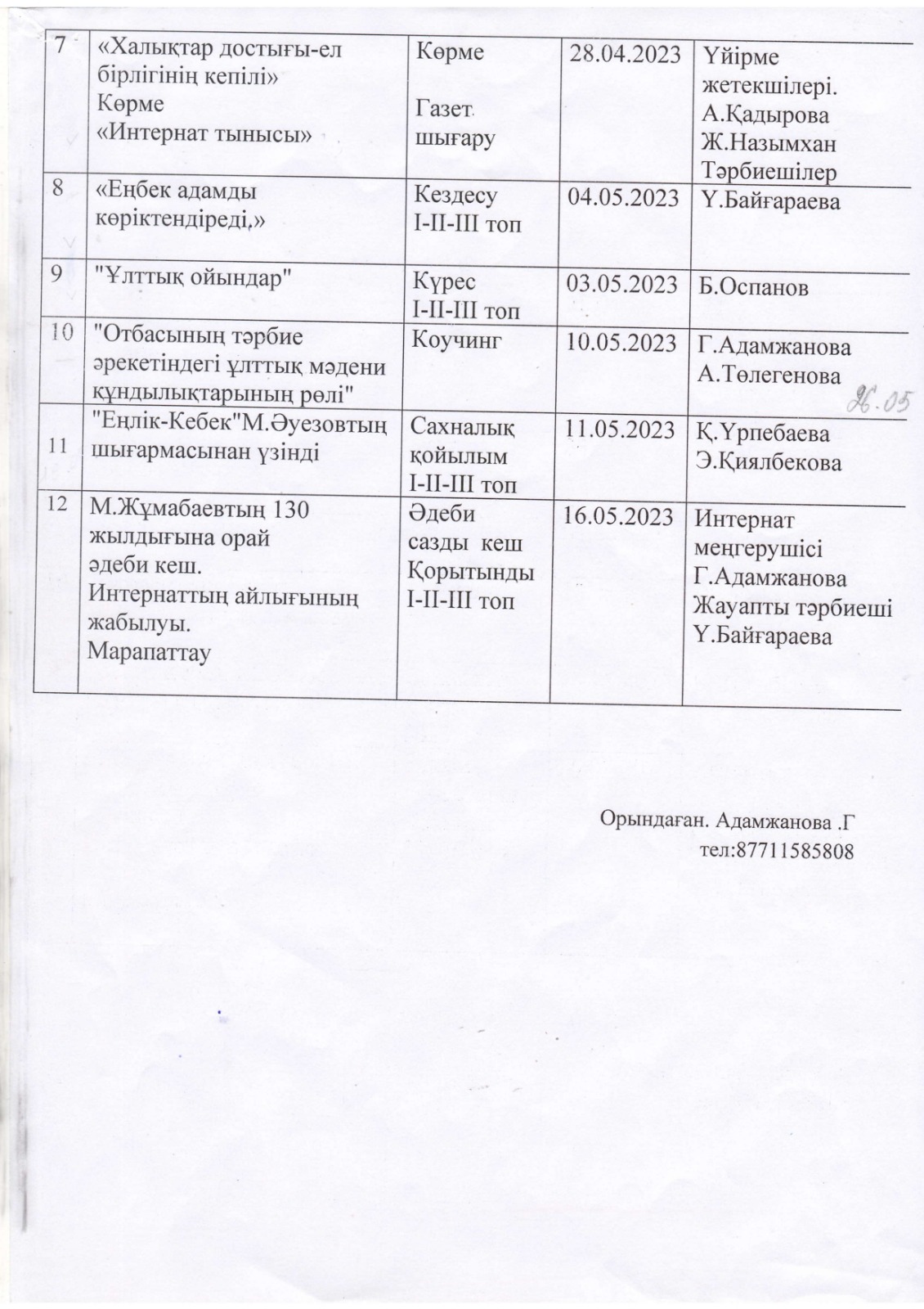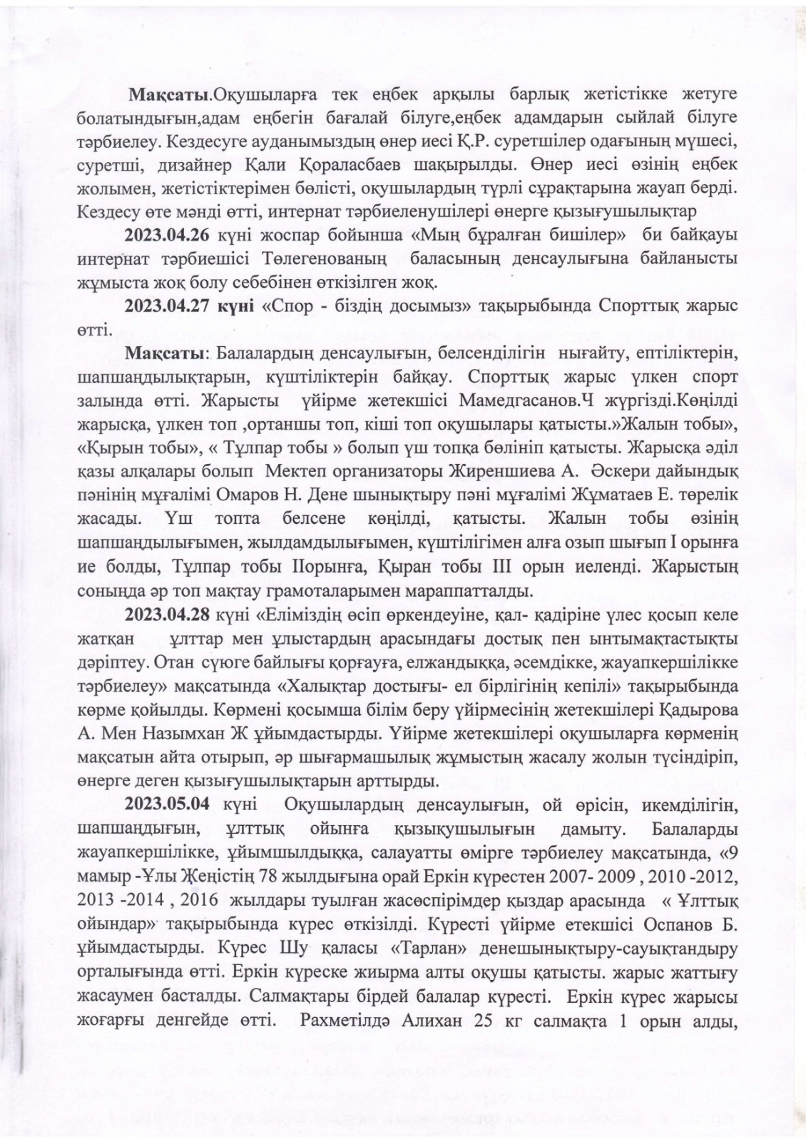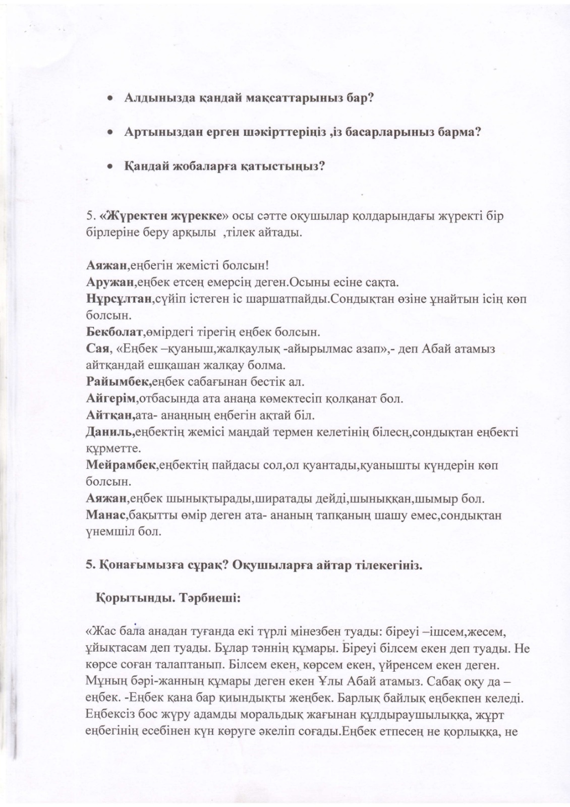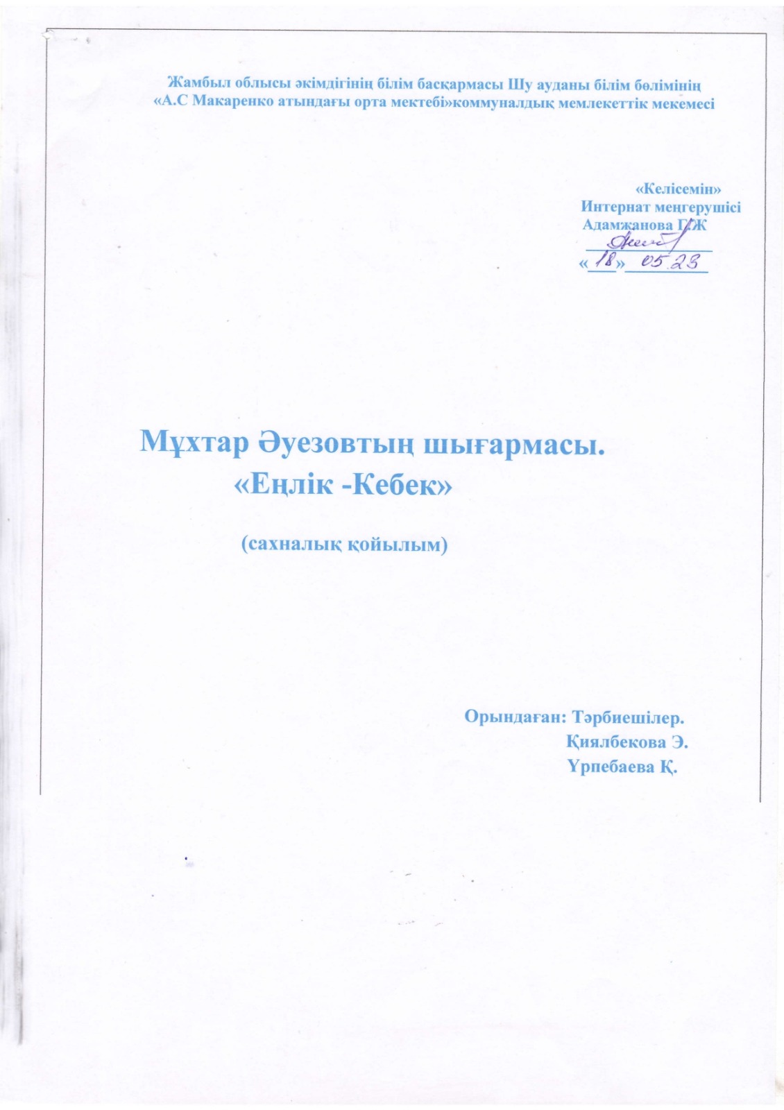 "Тәрбиелі ұрпақ - болашақтың жалғасы" тақырыбында мектеп жанындағы интернат айлығының жоспары бойынша өткізілген іс-шаралар » «Жамбыл облысы әкімдігінің білім басқармасы Шу ауданының білім бөлімінің «Антон Семенович Макаренко атындағы орта мектебі» коммуналдық мемлекеттік мекемесі