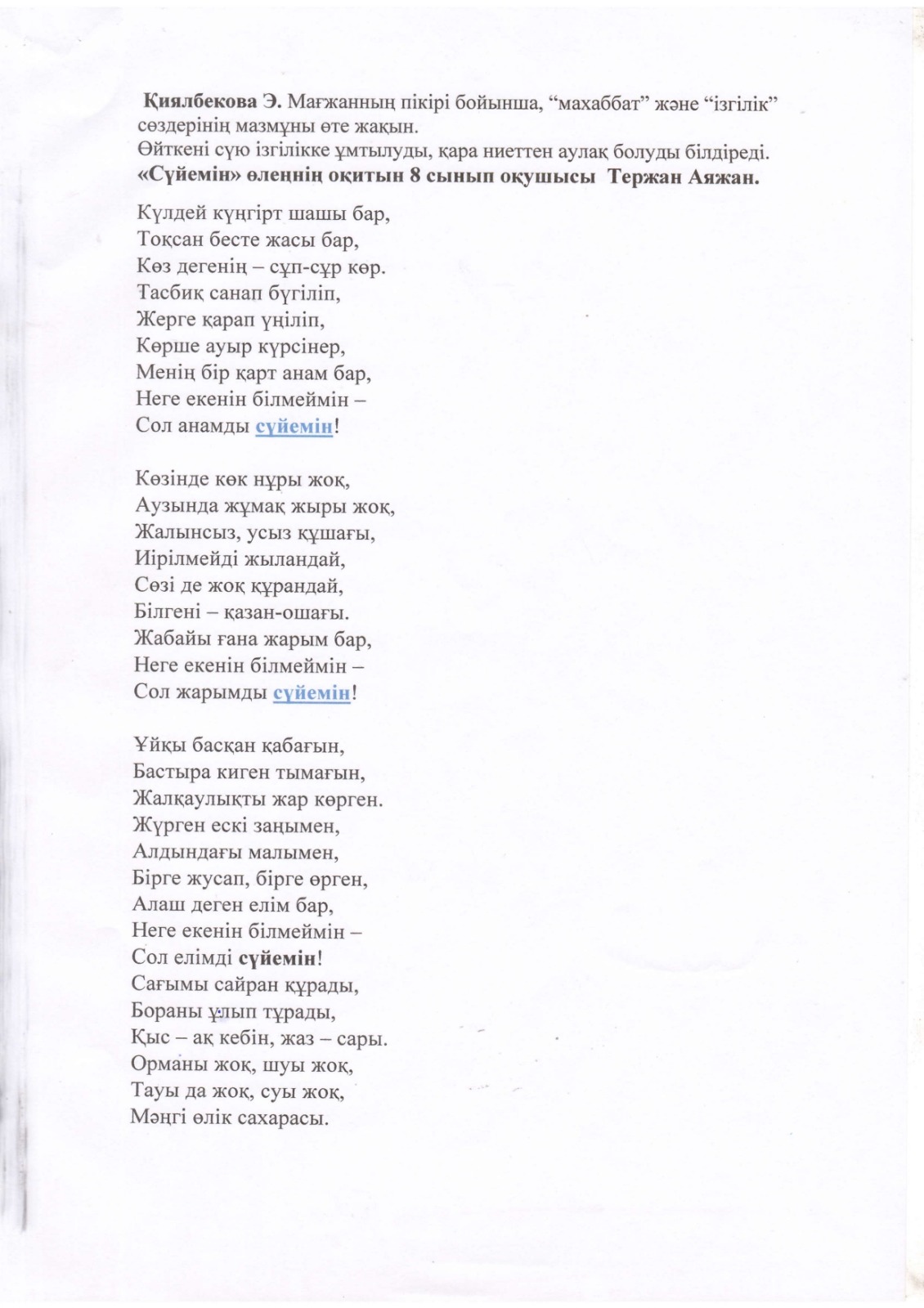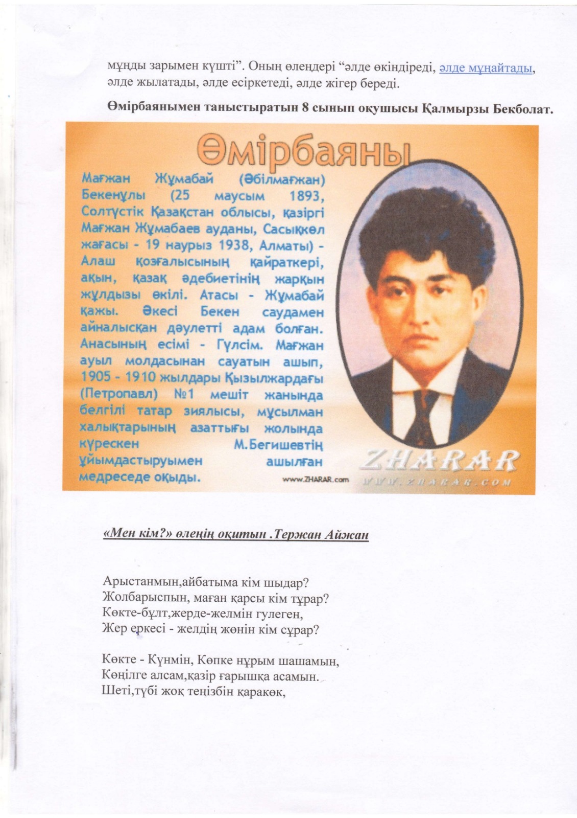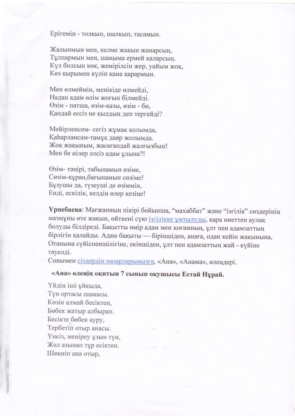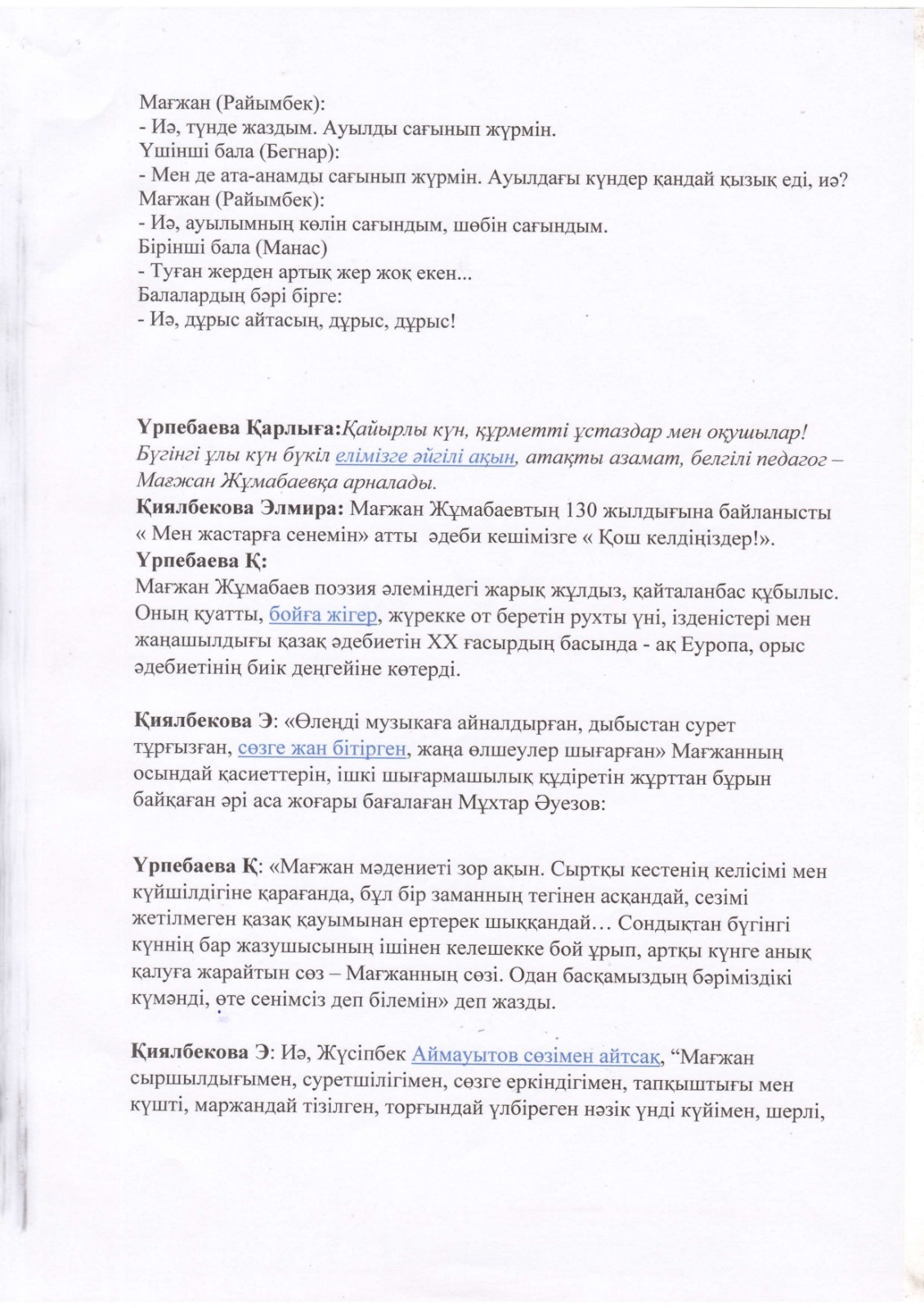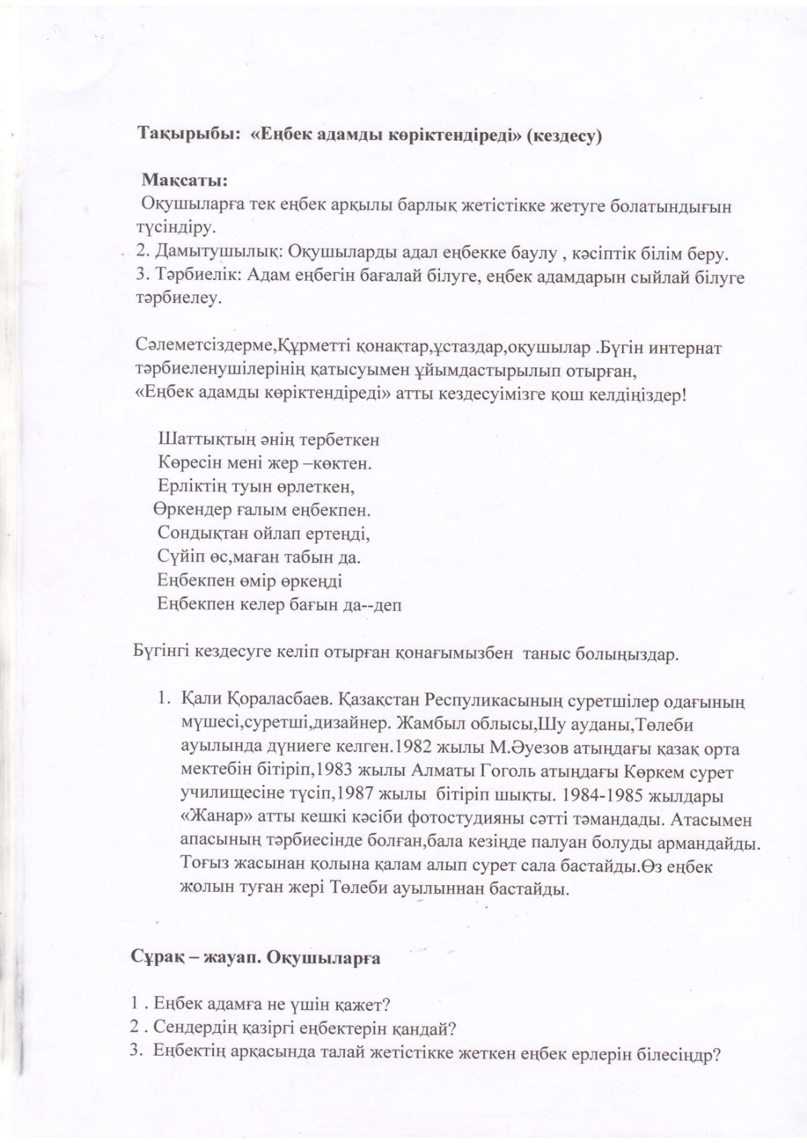"Тәрбиелі ұрпақ - болашақтың жалғасы" тақырыбында мектеп жанындағы интернат айлығының жоспары бойынша өткізілген іс-шаралар » «Жамбыл облысы әкімдігінің білім басқармасы Шу ауданының білім бөлімінің «Антон Семенович Макаренко атындағы орта мектебі» коммуналдық мемлекеттік мекемесі