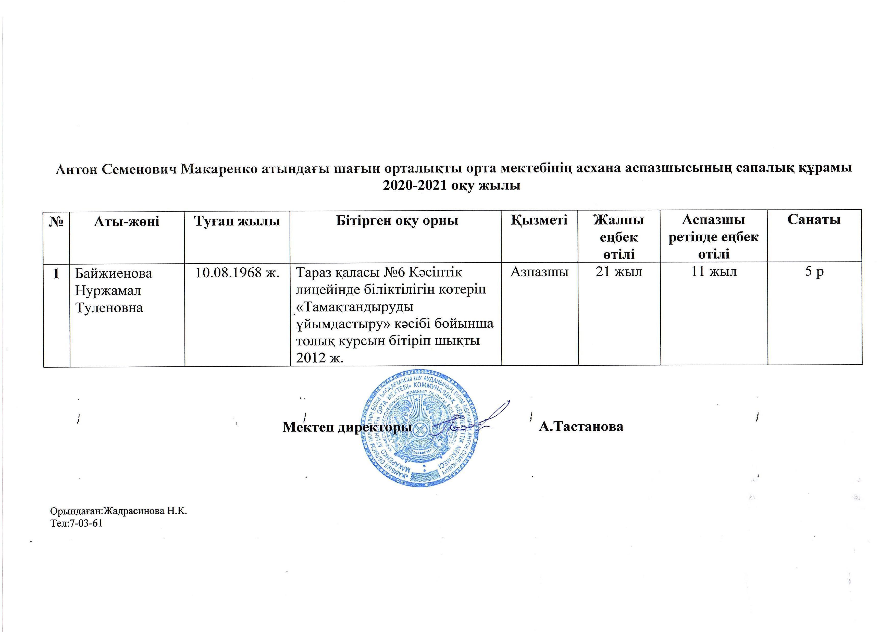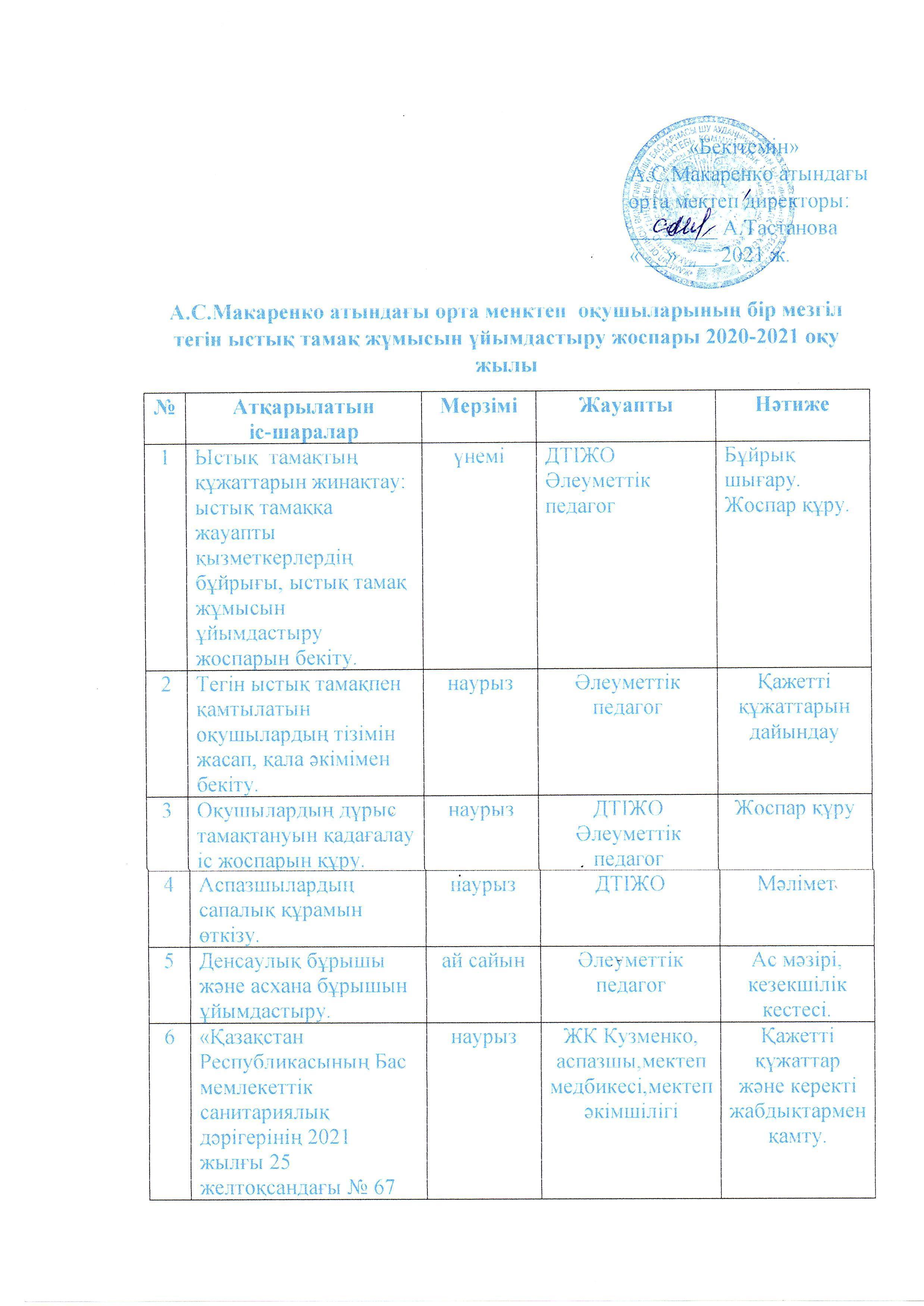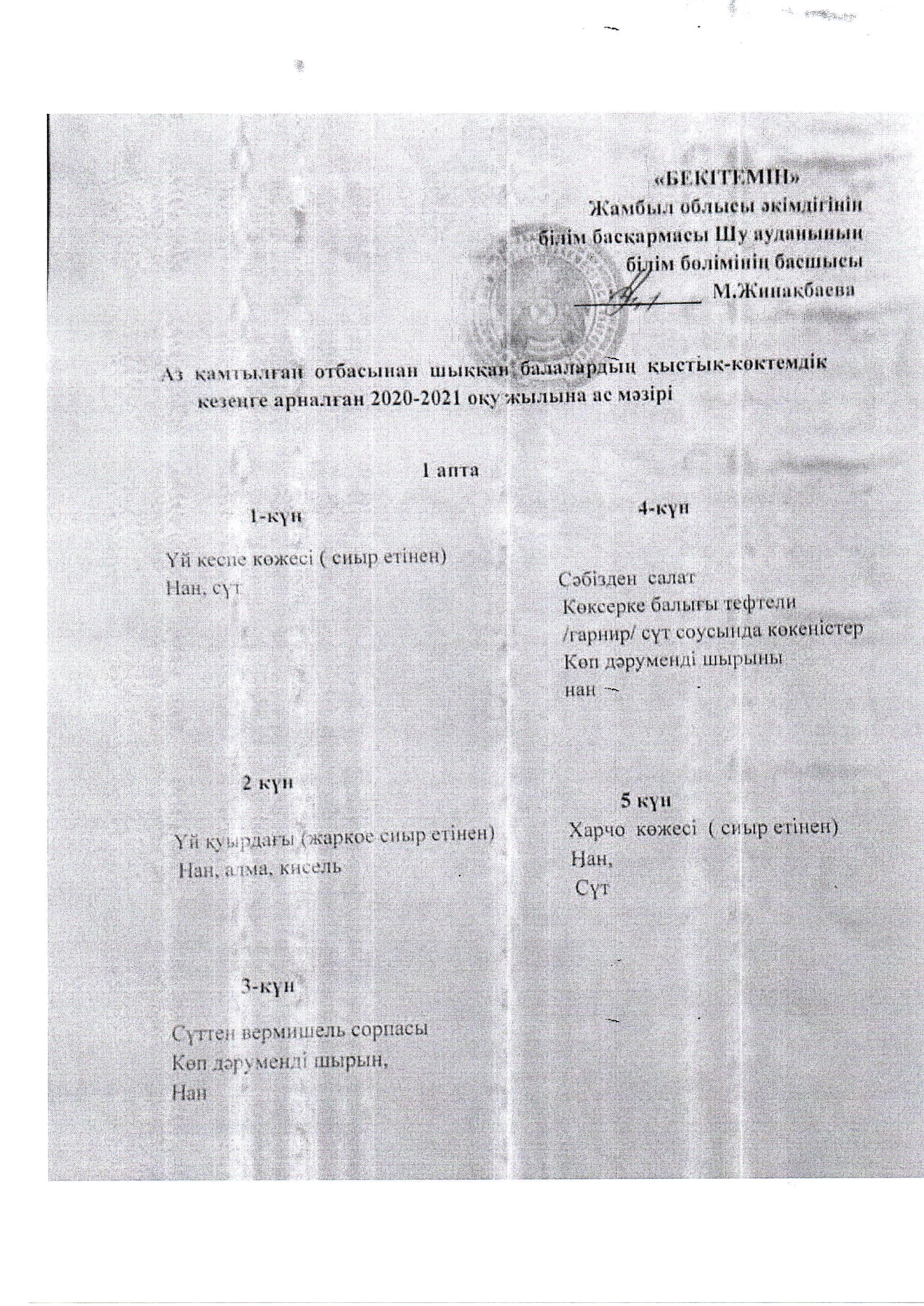 Бір мезгіл ыстық тамақты ұйымдастыру » «Zhambyl region әкімдігінің білім басқармасы Шу ауданының білім бөлімінің «Антон Семенович Макаренко атындағы орта мектебі» коммуналдық мемлекеттік мекемесі