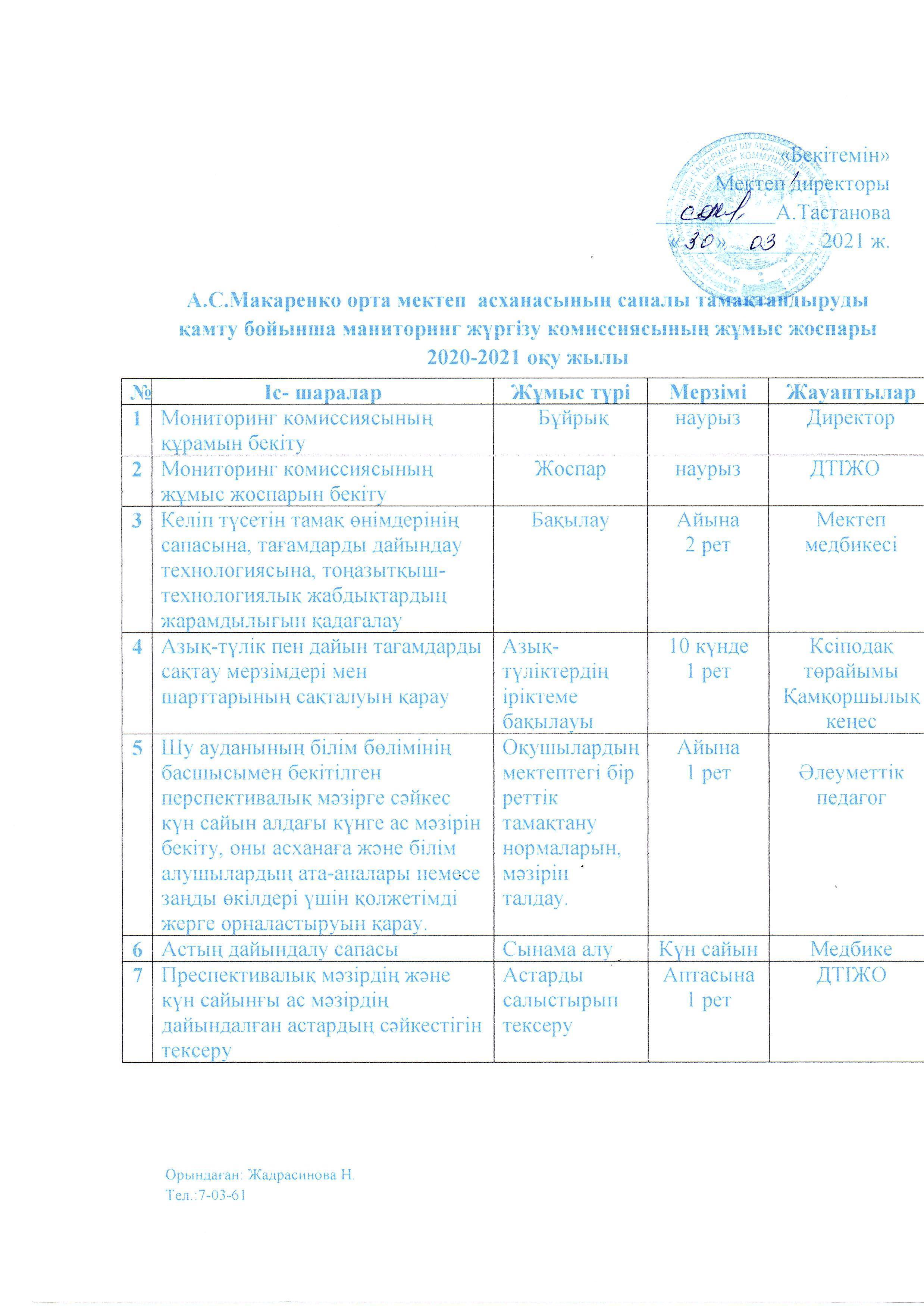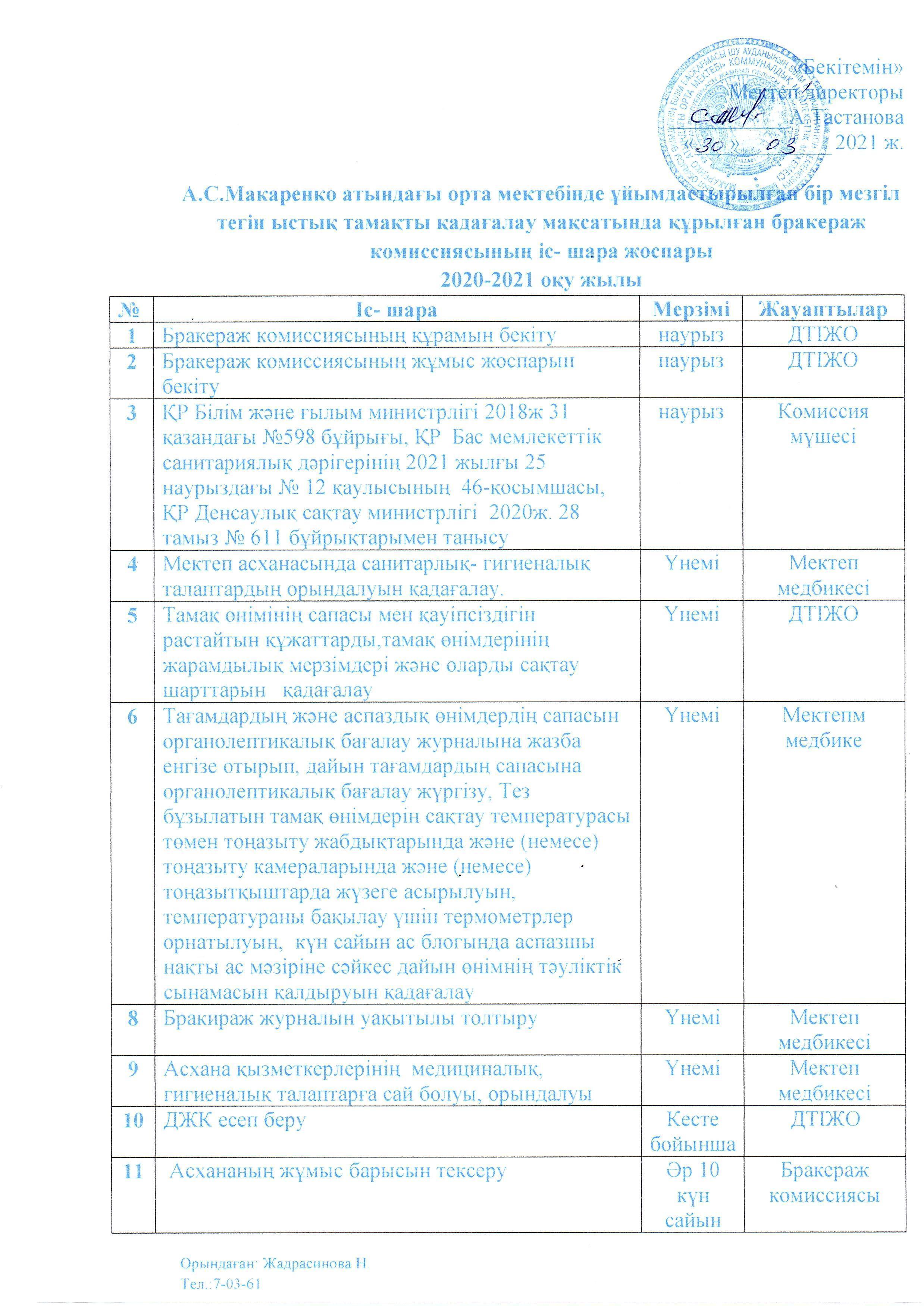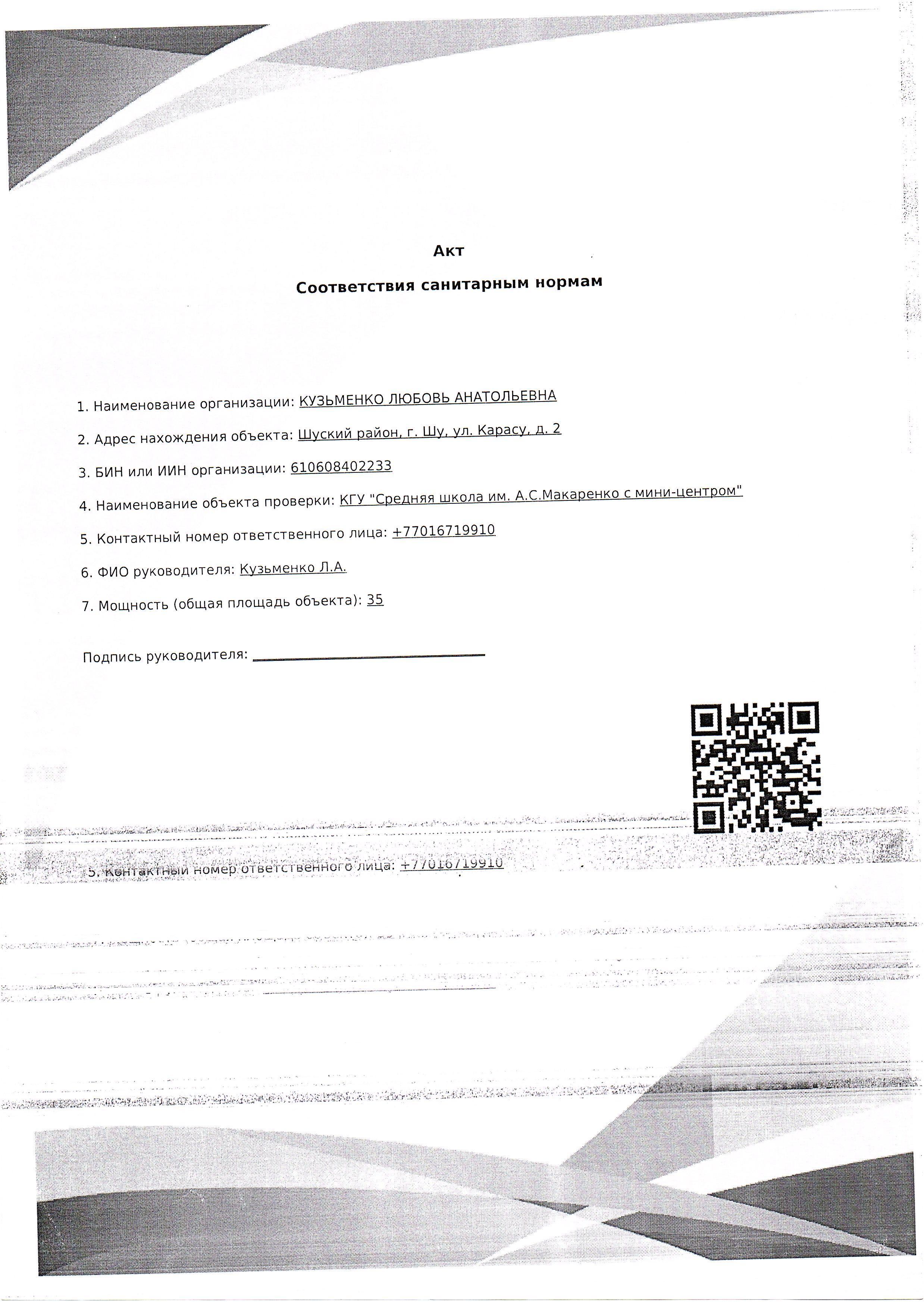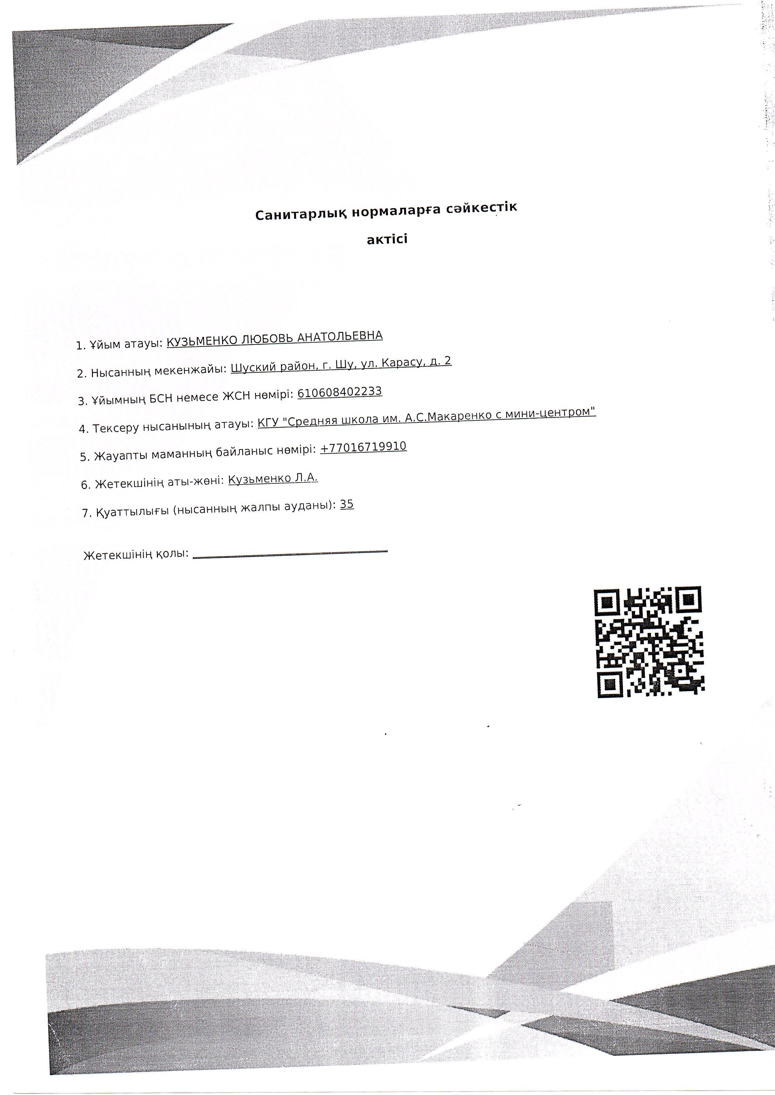 Бір мезгіл ыстық тамақты ұйымдастыру » «Zhambyl region әкімдігінің білім басқармасы Шу ауданының білім бөлімінің «Антон Семенович Макаренко атындағы орта мектебі» коммуналдық мемлекеттік мекемесі