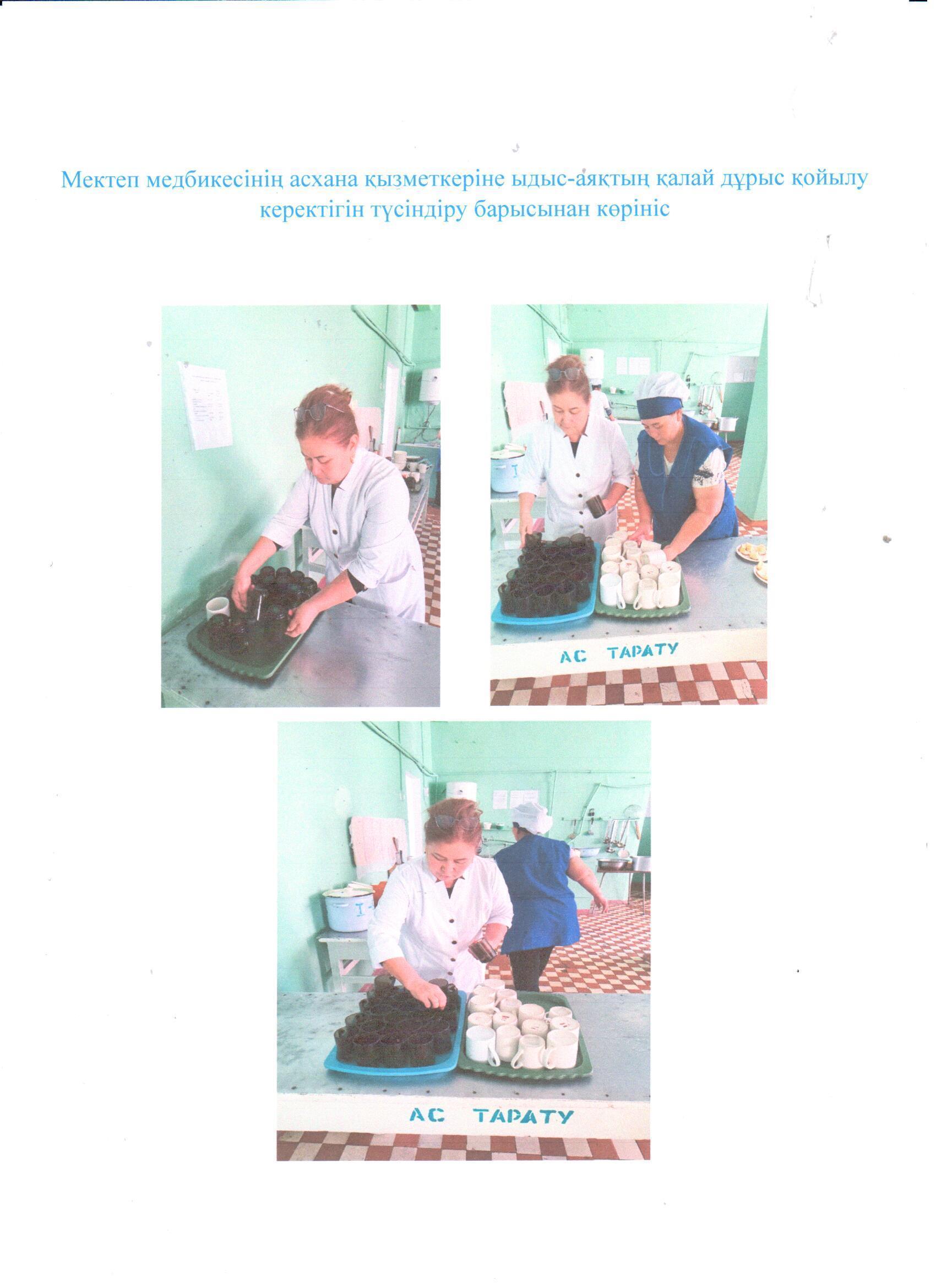 Мектеп медбикесінің асхана қызметкеріне дұсіндіру жұмысы » «Zhambyl region әкімдігінің білім басқармасы Шу ауданының білім бөлімінің «Антон Семенович Макаренко атындағы орта мектебі» коммуналдық мемлекеттік мекемесі