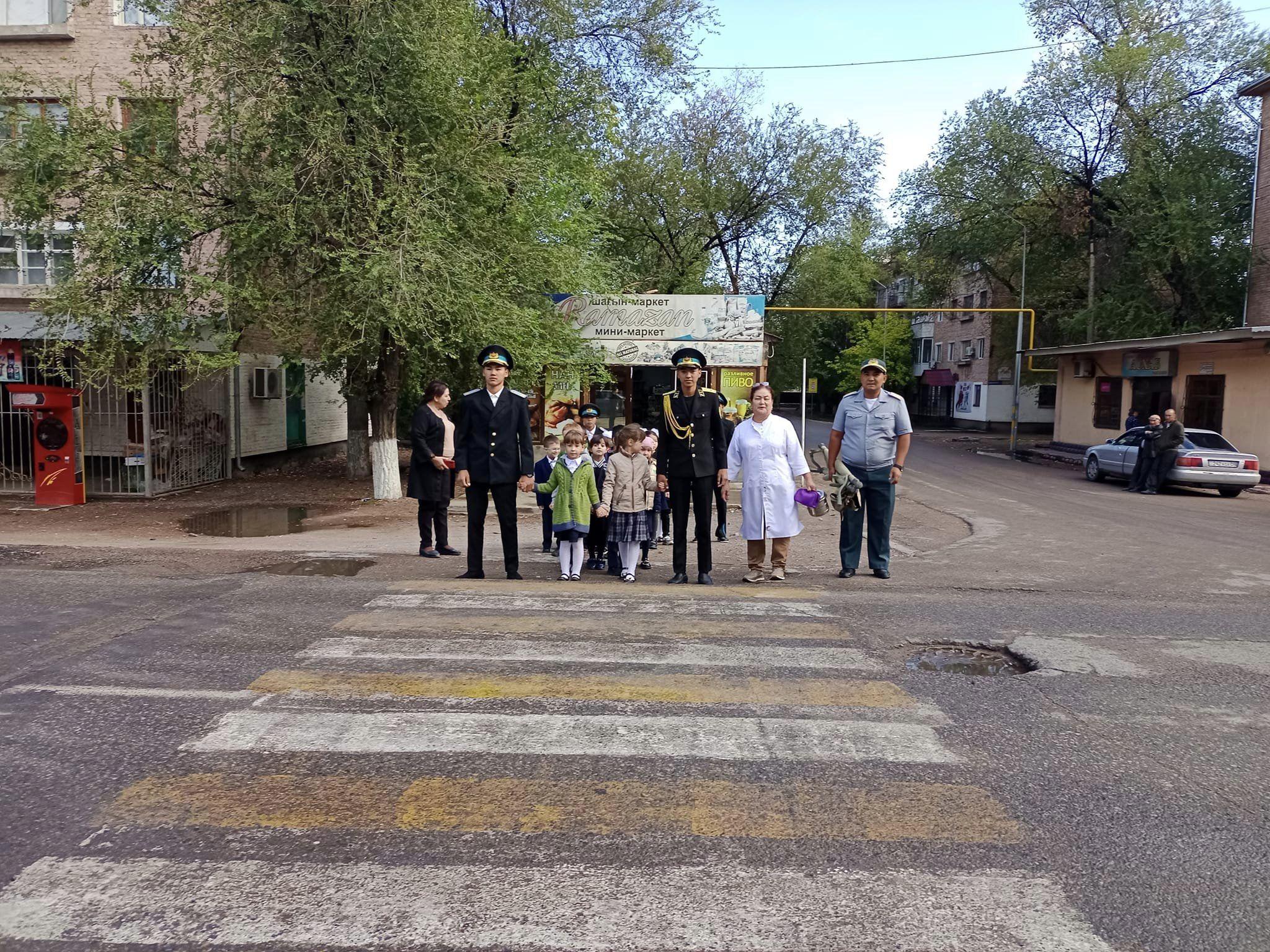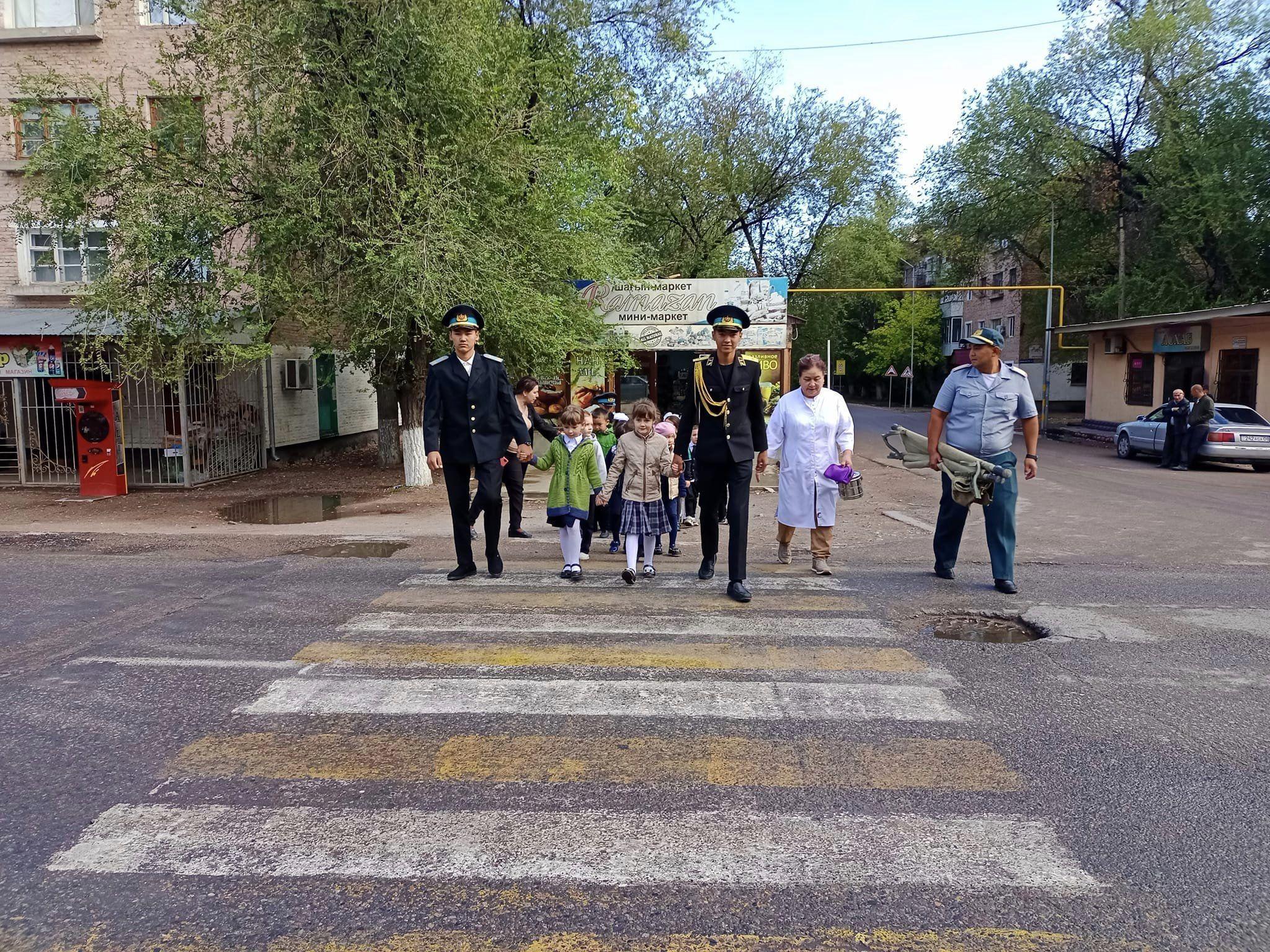 А.С.Макаренко атындағы орта мектебі бойынша Құқықтық тәрбие жоспарына және Жас полиция көмекшілерінің жоспары мен Қауіпсіздікті қамтамасыз ету жоспарына сәйкес ДҚТІЖО мен БӘД пәнінің мұғалімінің ұйымдастыруымен "Жас полиция көмекшілері" жасағы 1 сыныптың оқушыларымен "Жол ережесін біліп жүр, балақай!"тақырыбында практикалық сабақ көрсетіп, түсіндірме жұмысын жүргізсе, БӘД пәнінің мұғалімі жол белгілермен таныстырып өтті. Іс-шараның мақсаты: Түрлі жағдайда күйзеліске, дүрбелеңге берілмеу, қоғамдық ортада өзін дұрыс ұстау мәдениетін қалыптастыру.