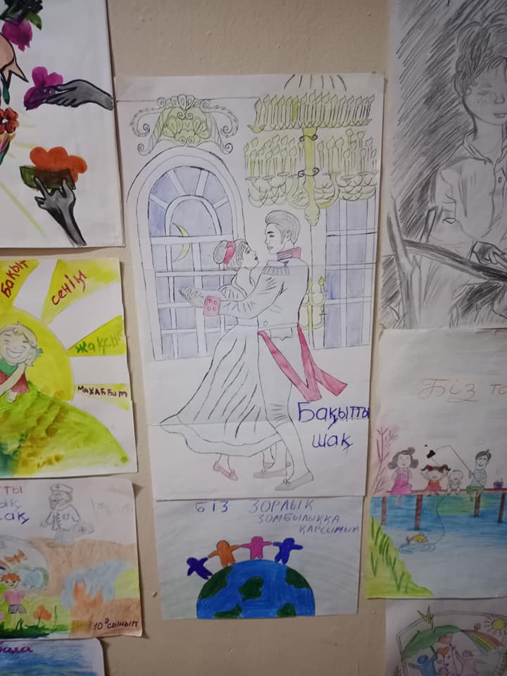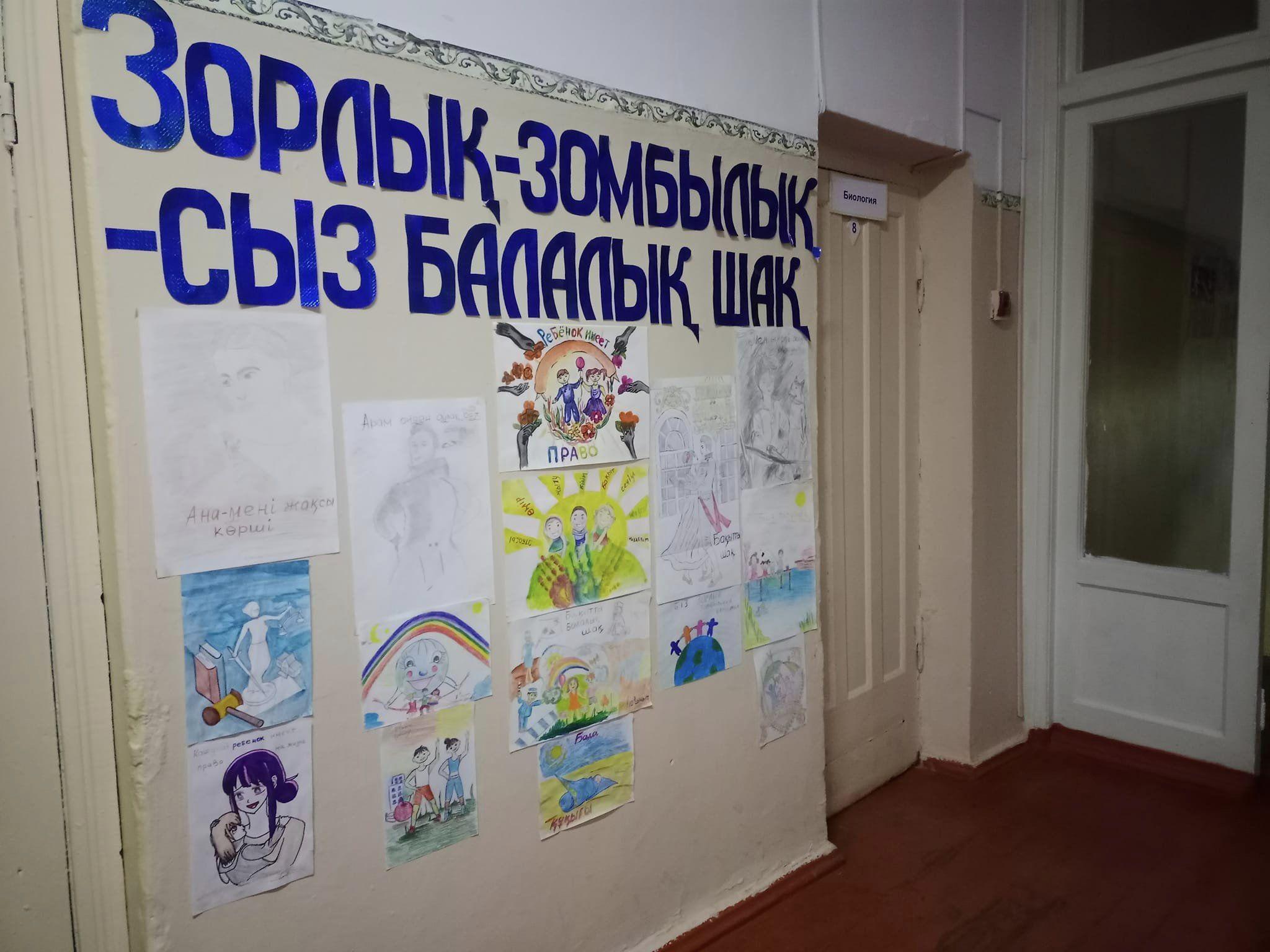 «Қатыгездік пен зорлық-зомбылықсыз балалық шақ» республикалық ақпараттық науқаны аясында "СУРЕТТЕ СӨЙЛЕЙДІ" тақырыбында мектебіміздің оқушылары өз қолдарымен салған суреттері көрмеге қойылды.