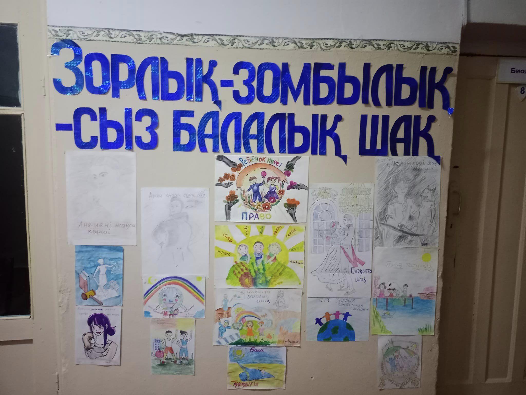 А.С.Макаренко атындағы орта мектебінде Оқу-ағарту министрлігінің бастамасымен Қазақстанда БҰҰ-ның Бала құқықтары туралы конвенциясын ратификациялау негізінде 8-20 қараша аралығында «Қатыгездік пен зорлық-зомбылықсыз балалық шақ» республикалық ақпараттық науқаны аясында "СУРЕТТЕ СӨЙЛЕЙДІ" тақырыбында мектебіміздің оқушылары өз қолдарымен салған суреттері көрмеге қойылды. Іс-шараның мақсаты: Балалар арасында зорлық -зомбылықты,қараусыздық пен паназыздықты, құқық бұзушылықты алдын алу.