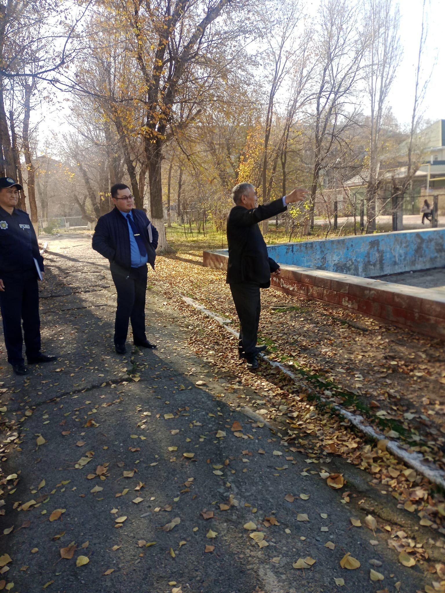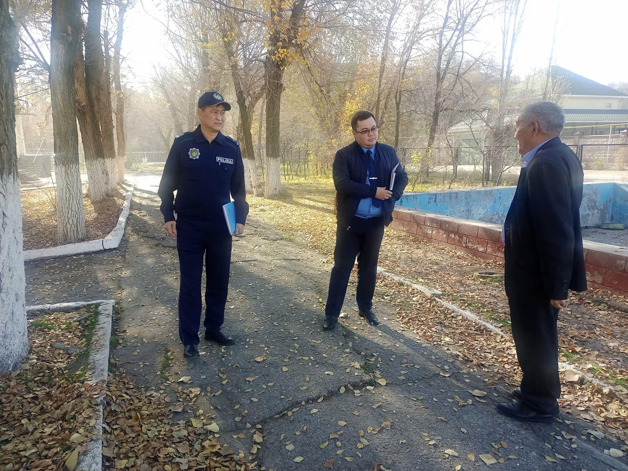 №3-мобильді топтың жетекшісі, Шу ауданаралық прокуратурасының прокуроры Малдыбаев Қуаныш Есжанович пен мобильді топтың мүшесі Б.Жайлибеков бірлесе отырып, мектеп ауласына рейд жүргізді.