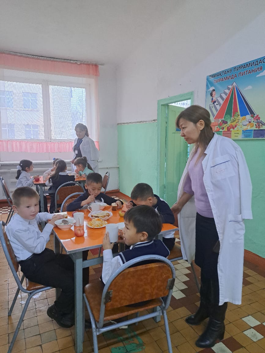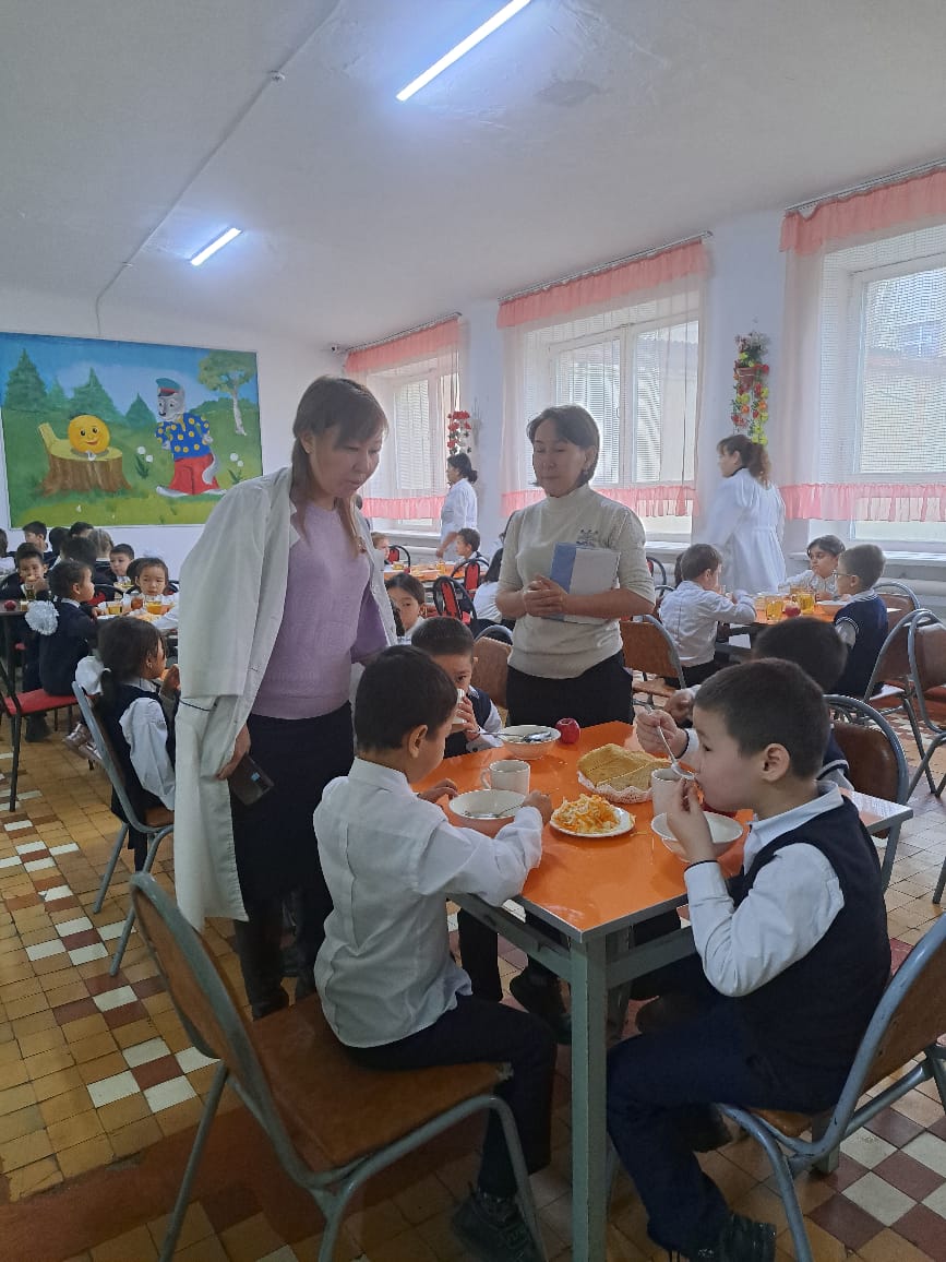 Антон Семенович Макаренко атындағы орта мектебінің бракераж комиссия мүшелері бір мезгіл тегін және жеңілдетілген ыстық тамақпен қамтылған оқушылардың тамақтану барысын тексерді. Тамақтану барысында беріліп жатқан тамақ ас мәзірімен сәйкес, нормаға сай екені, балалар тамақты сүйсініп ішіп отырғаны және оқушылармен сұхбат барысында берілген тамақ дәмді екені анықтады.