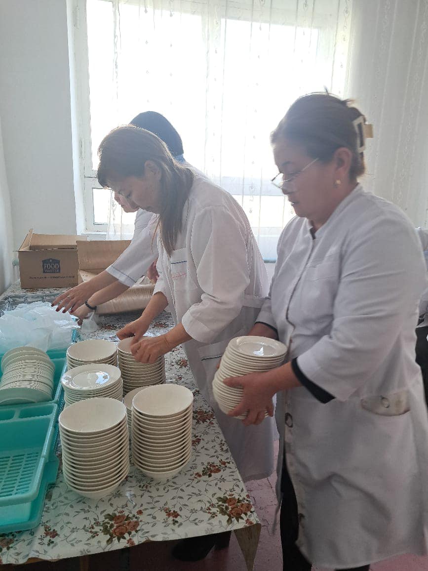 Антон Семенович Макаренко атындағы орта мектебінің бракераж комиссия мүшелері бір мезгіл тегін және жеңілдетілген ыстық тамақпен қамтылған оқушыларға ЖК "АЛЛАНА" әкелген ыдыс-аяқтарды қабылдап алды.
