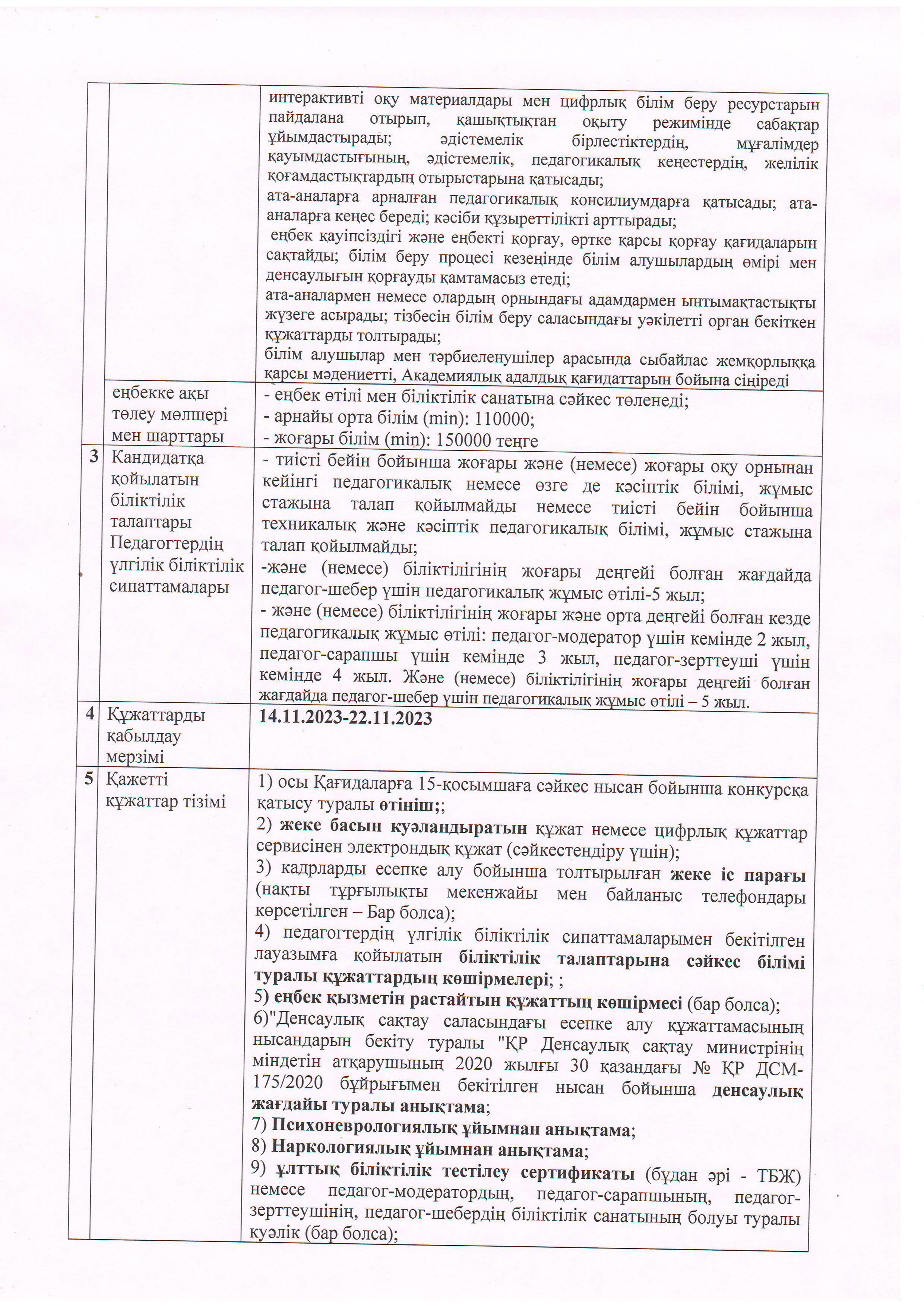 А.С.Макаренко атындағы орта мектебінде қазақ және орыс тілінде оқытатын сыныптарда техология пәнінің мұғаліміне бос лауазымына ( тұрақты) конкурс жариялайды.