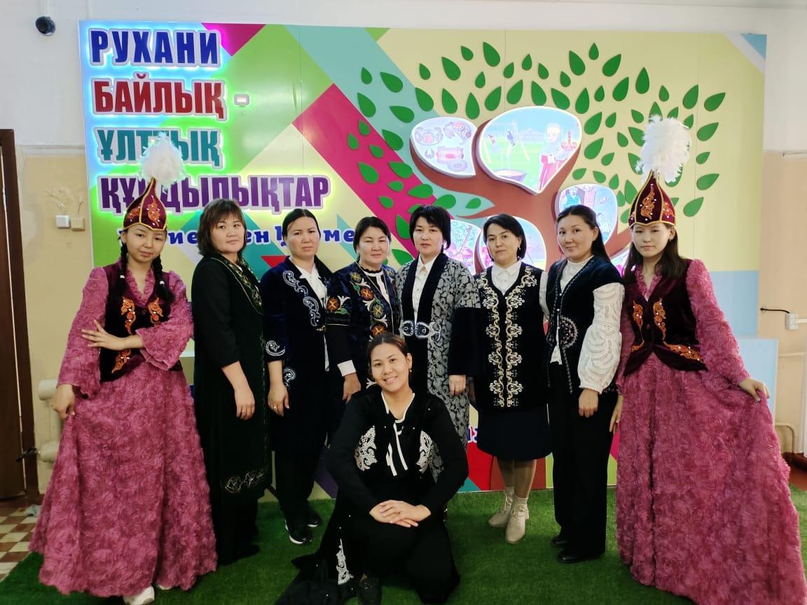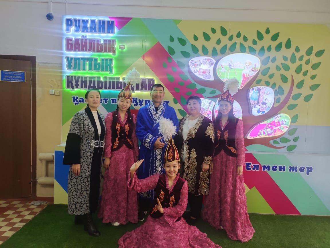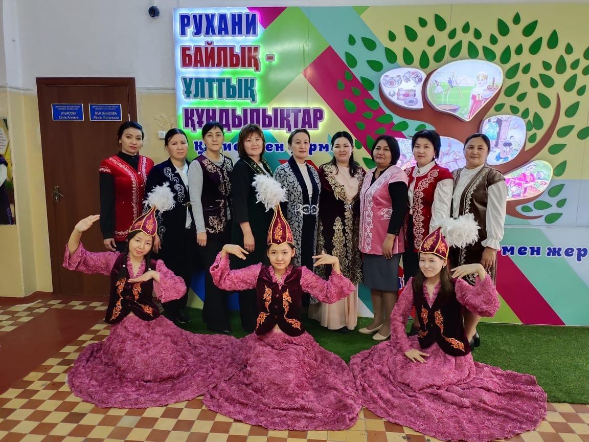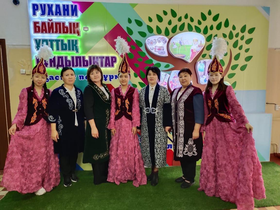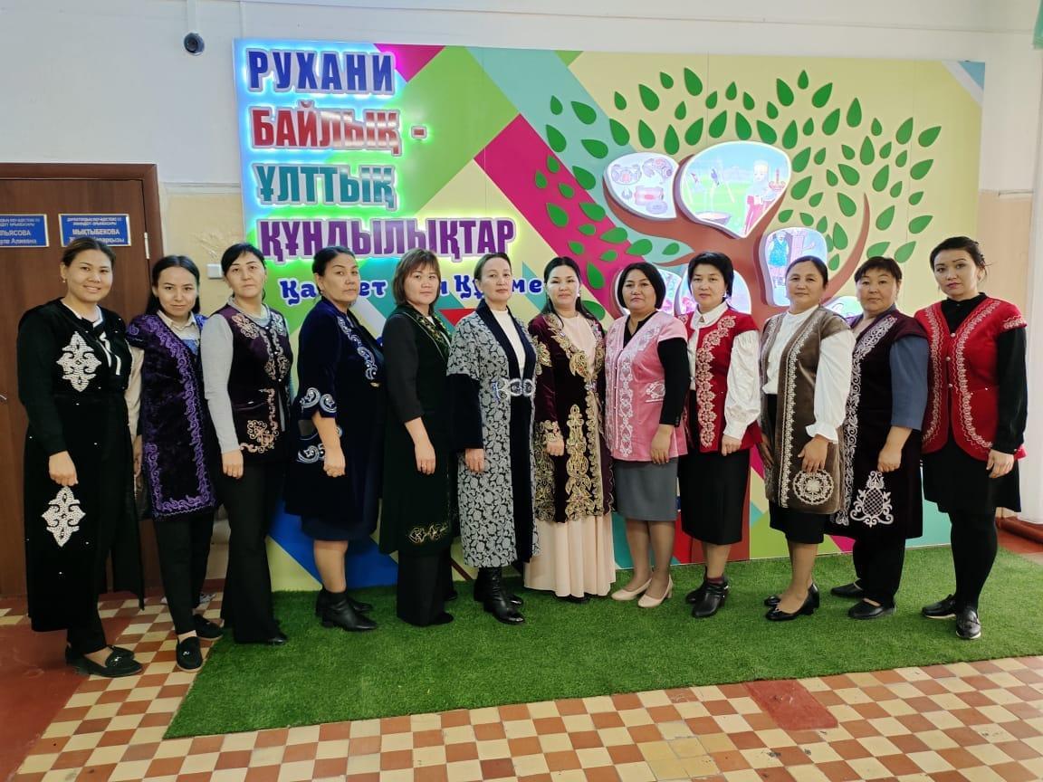 "Ұлттық киімдерді насихаттау мақсатында мектептің ұстаздары мен оқушылары ұлттық нақышта киімдер киіп ,ұлттық киімдерімізді насихаттады.