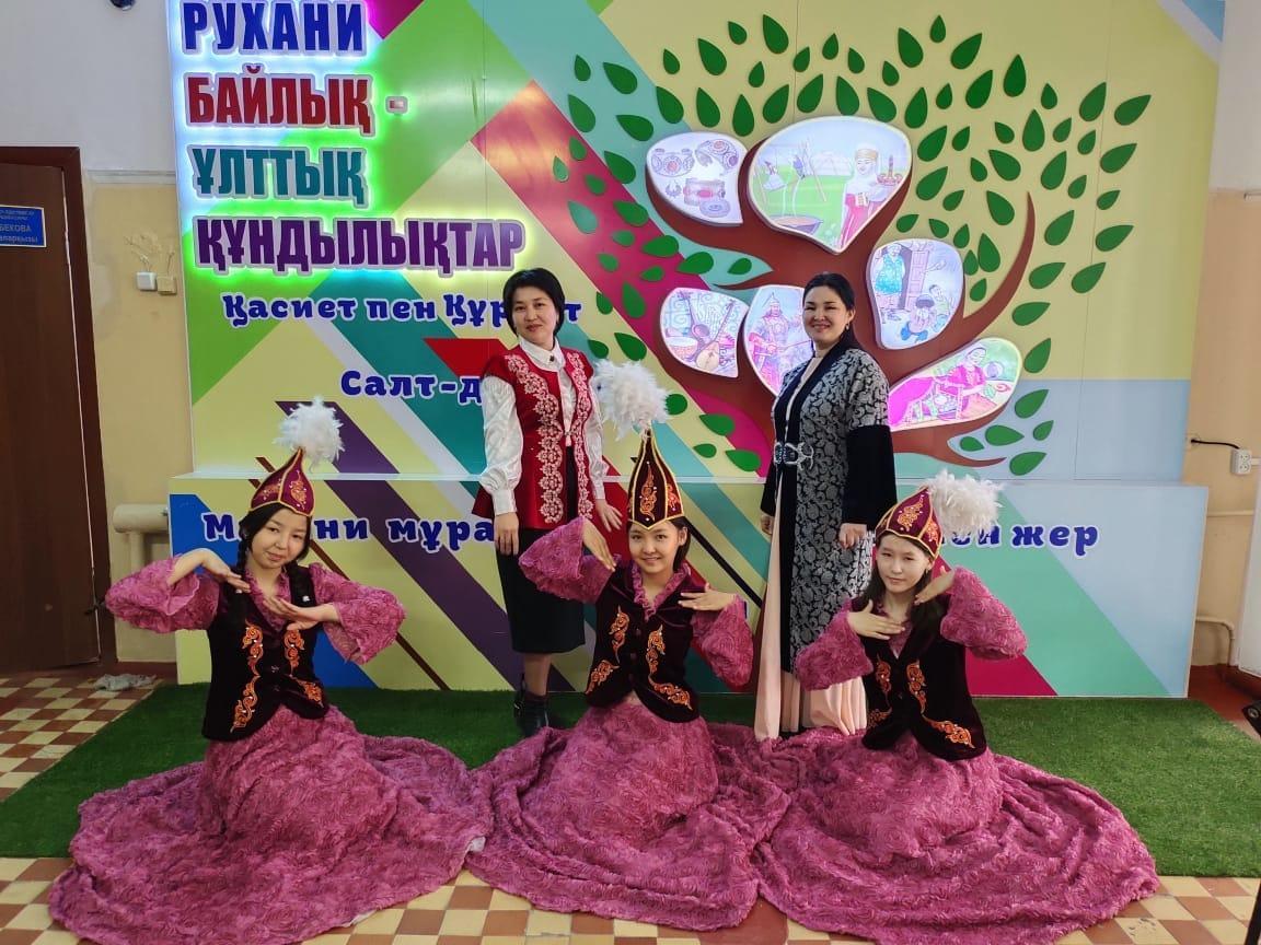 А.С.Макаренко атындағы орта мектебінде 13 қазан күні “Төрт тоқсан – төрт өнер” ұлттық мәдени – ағартушылық жобасының бірінші тоқсанға арналған іс – шаралар жоспарына сәйкес А.С.Макаренко атындағы орта мектебі директорының тәрбие ісі жөніндегі орынбасары Ә.Омарованың ұйымдастыруымен "Ұлттық киімдерді насихаттау мақсатында мектептің ұстаздары мен оқушылары ұлттық нақышта киімдер киіп ,ұлттық киімдерімізді насихаттады. #біртұтас_тәрбие