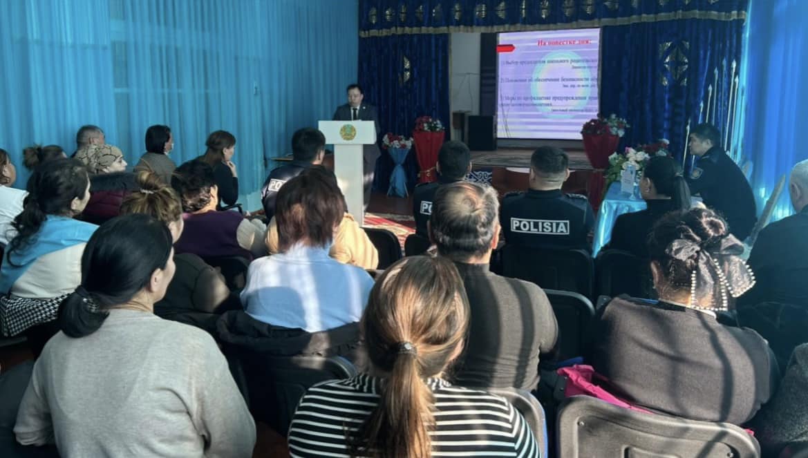 Мұнан кейін аудан әкімінің орынбасары Сұлтанбаев Найман Кенжеханұлы мен аудандық полиция бөлімінің бастығы Қойтөреев Дінмұхамбед Лашынұлы сөз алып, қоғамдағы түйткілді мәселелерді атап өтті. Атап айтсақ, ерте жүктілік, ұрлық-қарлық, ұрып-соғу, әлімжеттік, бопсалау, өз-өзіне қол салу, лудомания сынды фактілерді алға тартып, өскелең ұрпақтың осы бір кертартпа әдеттерге бой алдырмауы үшін бірлесе жұмыс жүргізуге шақырды. Құзырлы орындардан келген атқамінерлерді ұйып тыңдаған ата-аналар бала тәрбиесінде орын алып жатқан олқылықтар мен ағаттықтардың алдын алуға бағытталған жұмысқа оң бағасын беріп, бала тәрбиесіне немқұрайлылық танытпау қажеттігін ұғынғандай.