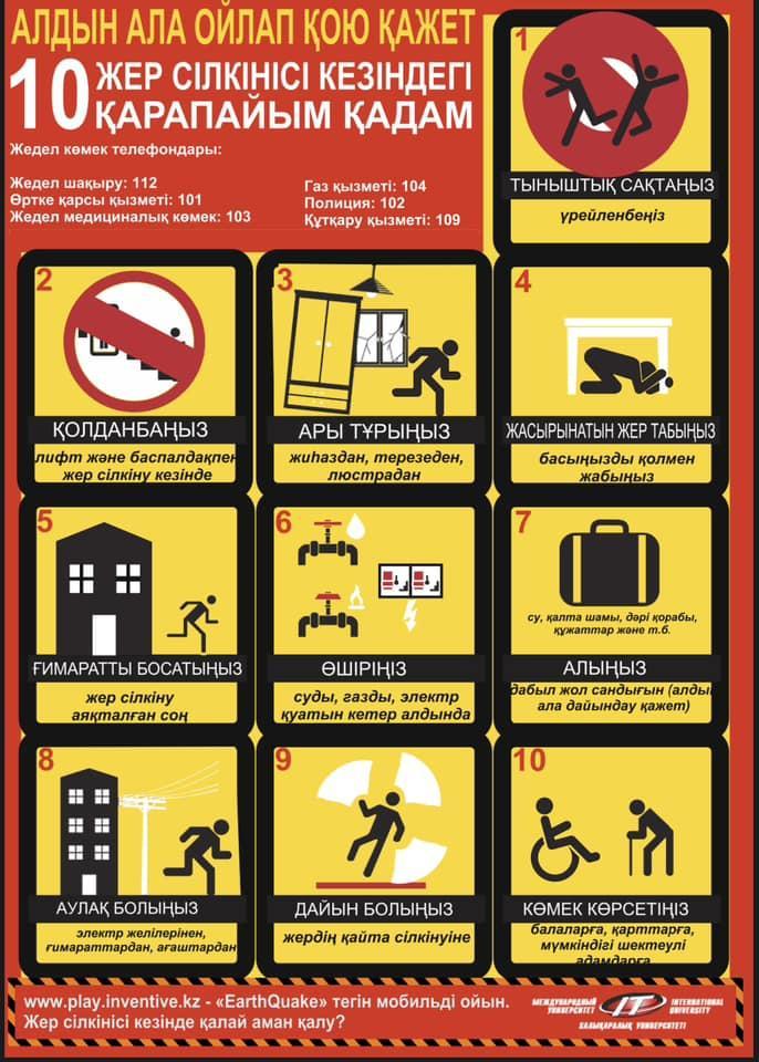 Құрметті ата-аналар, оқушылар, мектеп ұжымы! 2024 жылдың 23 ақпанында сағат 11.00-де Жамбыл облысы аумағында жалпы облыстық сейсмикалық жаттығу өткізу жоспарына сәйкес А.С. Макаренко атындағы орта мектебінде сейсможаттығулар өтеді.