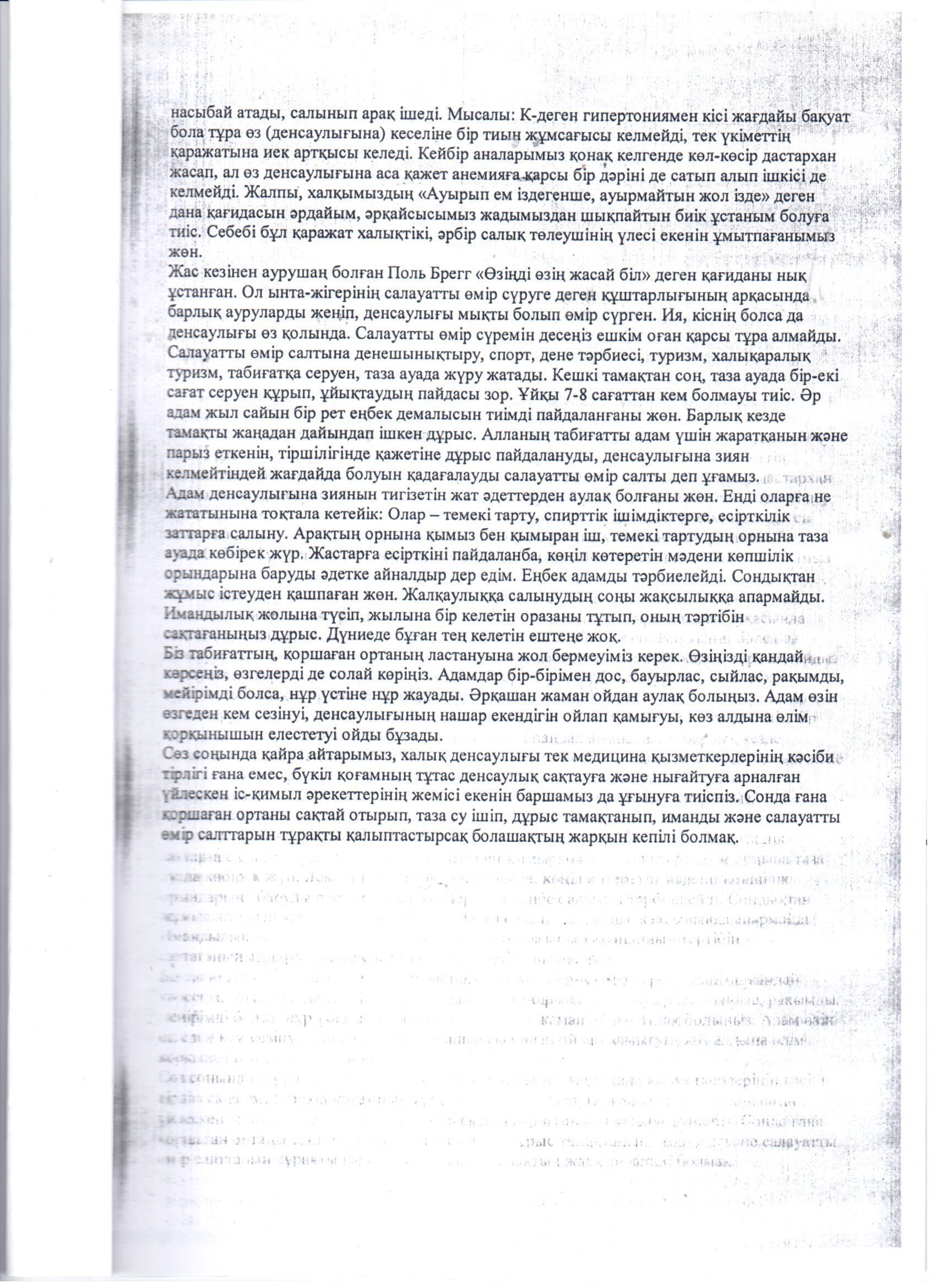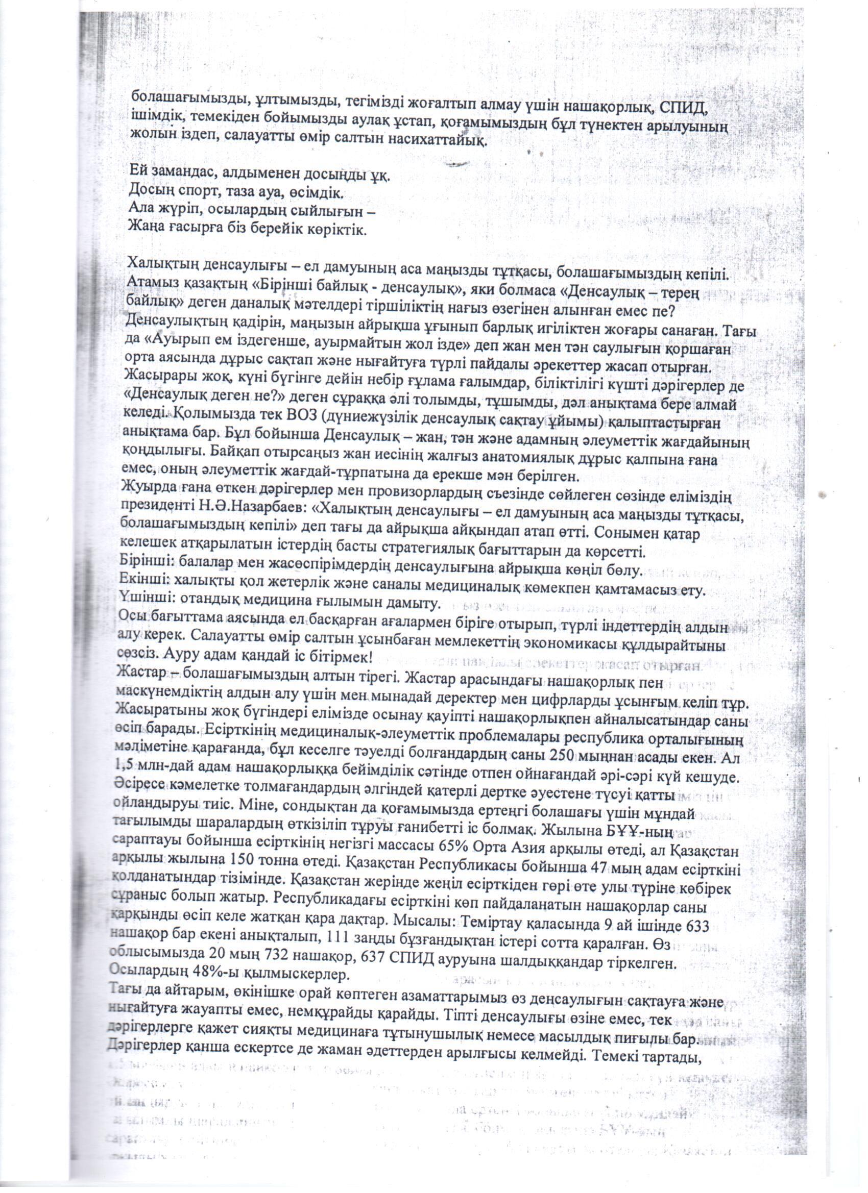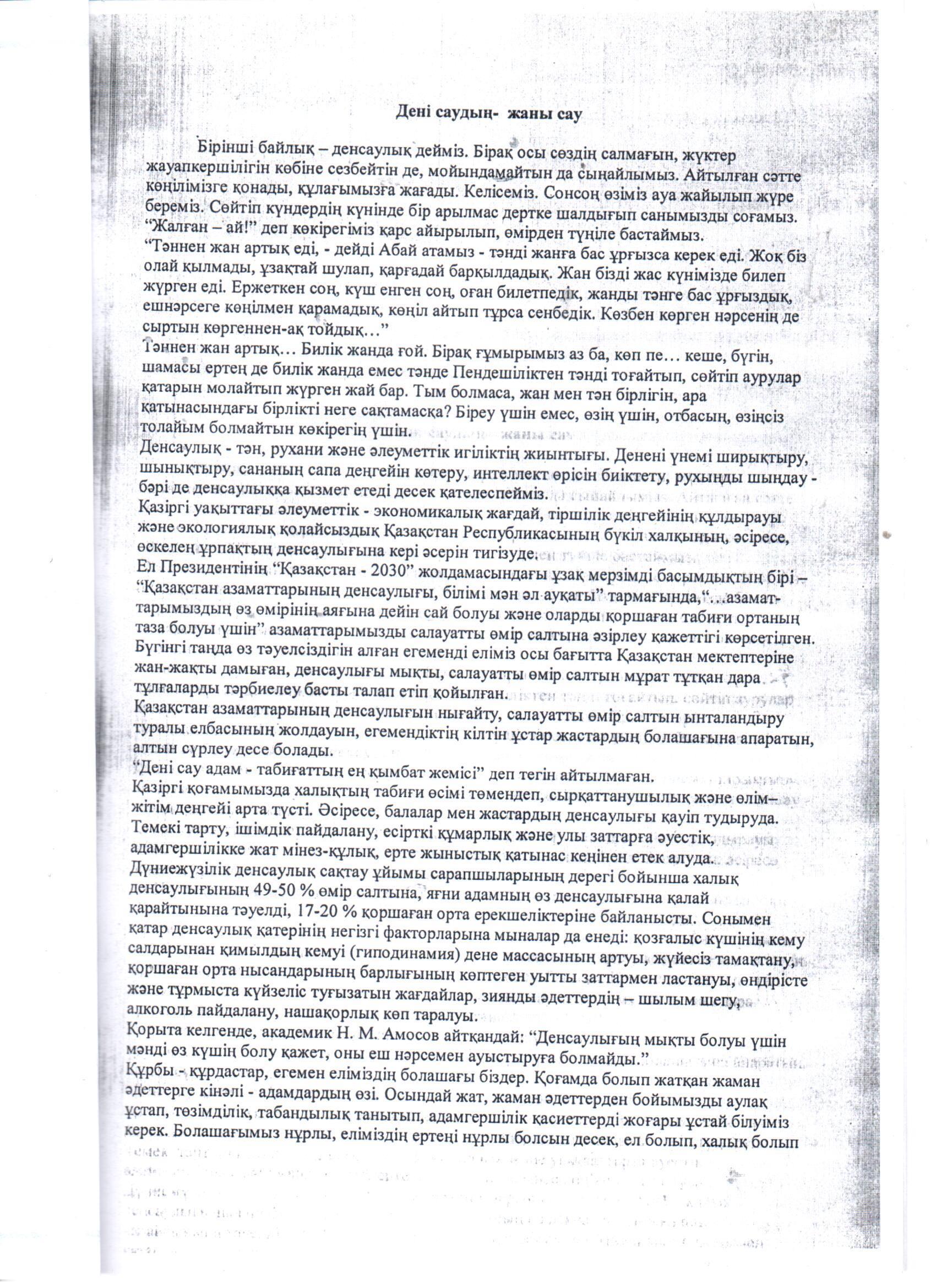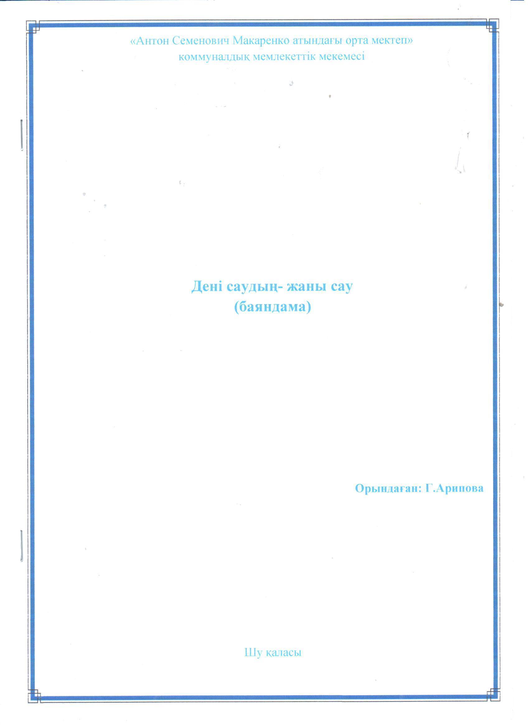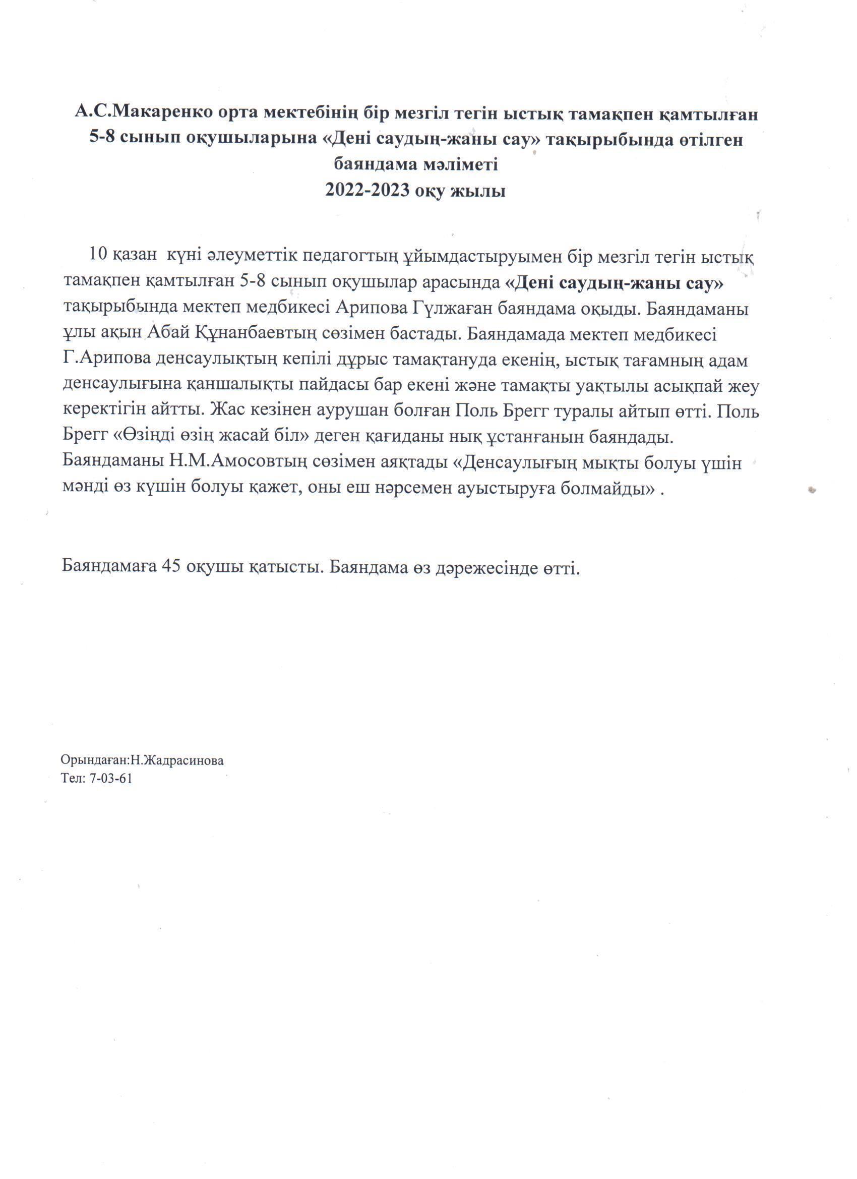 "Дені саудың- жаны сау" тақырыбында бір мезгіл тегін ыстық тамақпен қамтылған 5-8 сынып оқушыларына оқылған баяндама » «Жамбыл облысы әкімдігінің білім басқармасы Шу ауданының білім бөлімінің «Антон Семенович Макаренко атындағы орта мектебі» коммуналдық мемлекеттік мекемесі