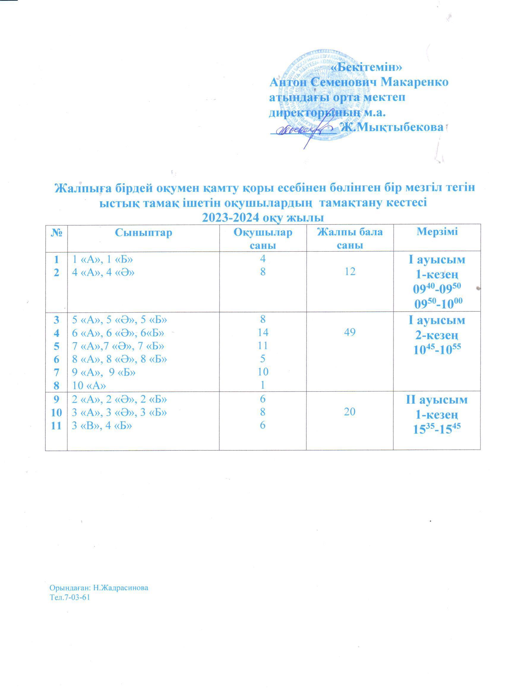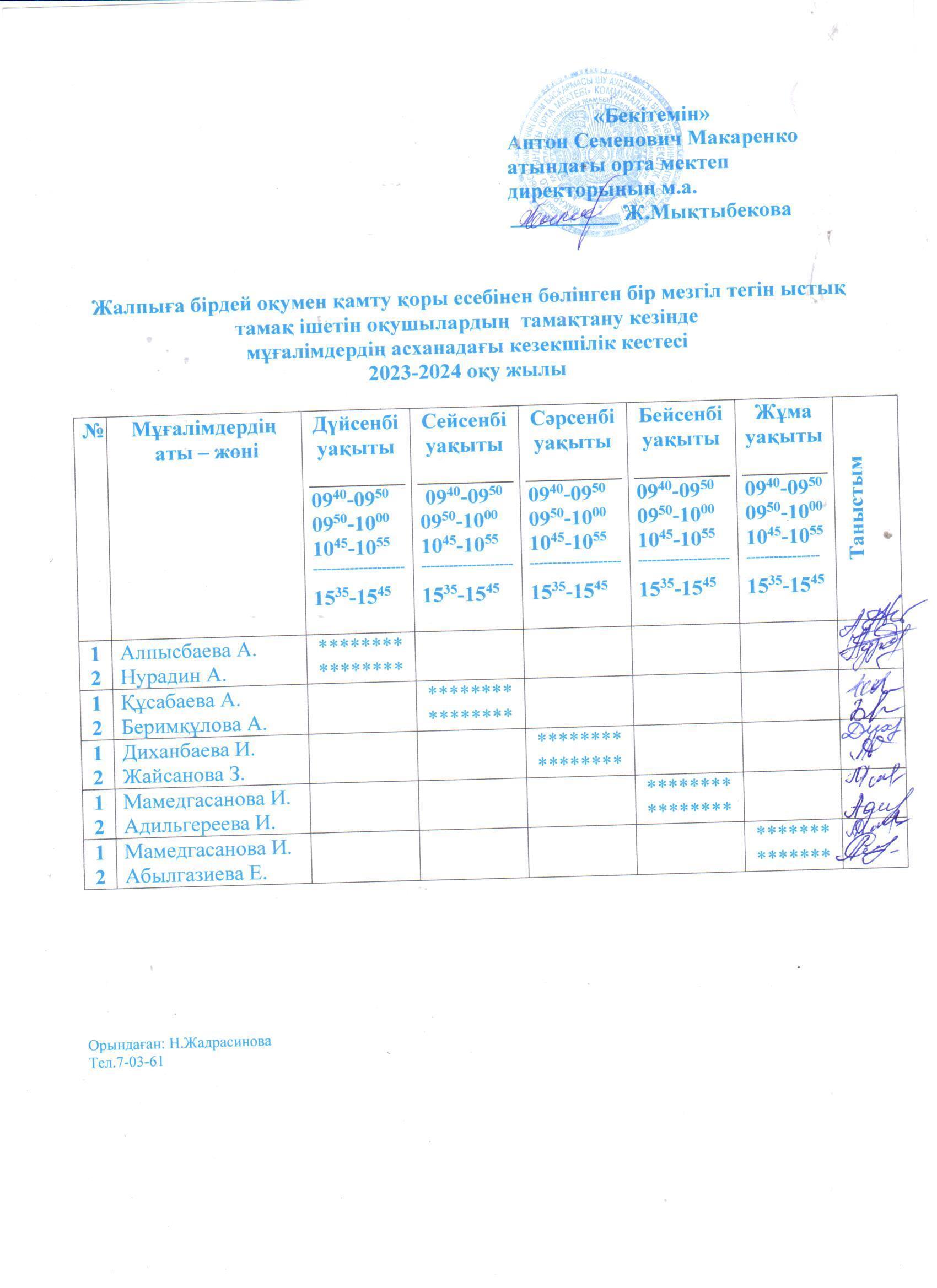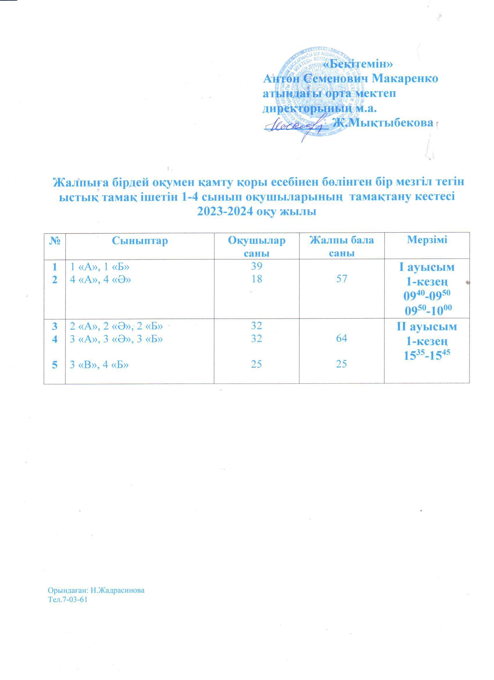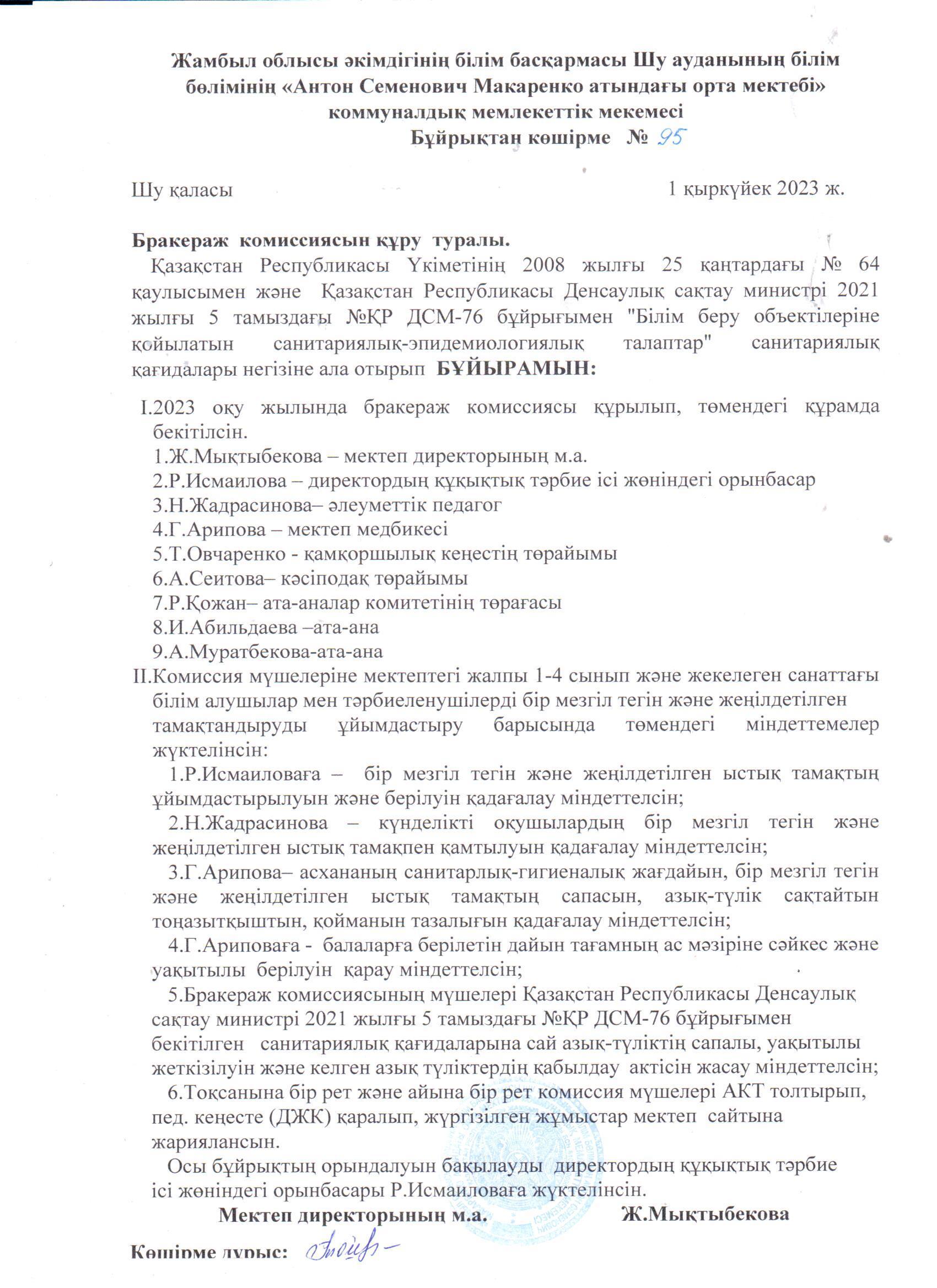 2023-2024 о/ж бастауыш 1-4 сынып және жекелеген санаттағы білім алушылар мен тәрбиеленушілерді бір мезгіл тегін және жеңілдетілген тамақтануды ұйымдастыру » «Жамбыл облысы әкімдігінің білім басқармасы Шу ауданының білім бөлімінің «Антон Семенович Макаренко атындағы орта мектебі» коммуналдық мемлекеттік мекемесі