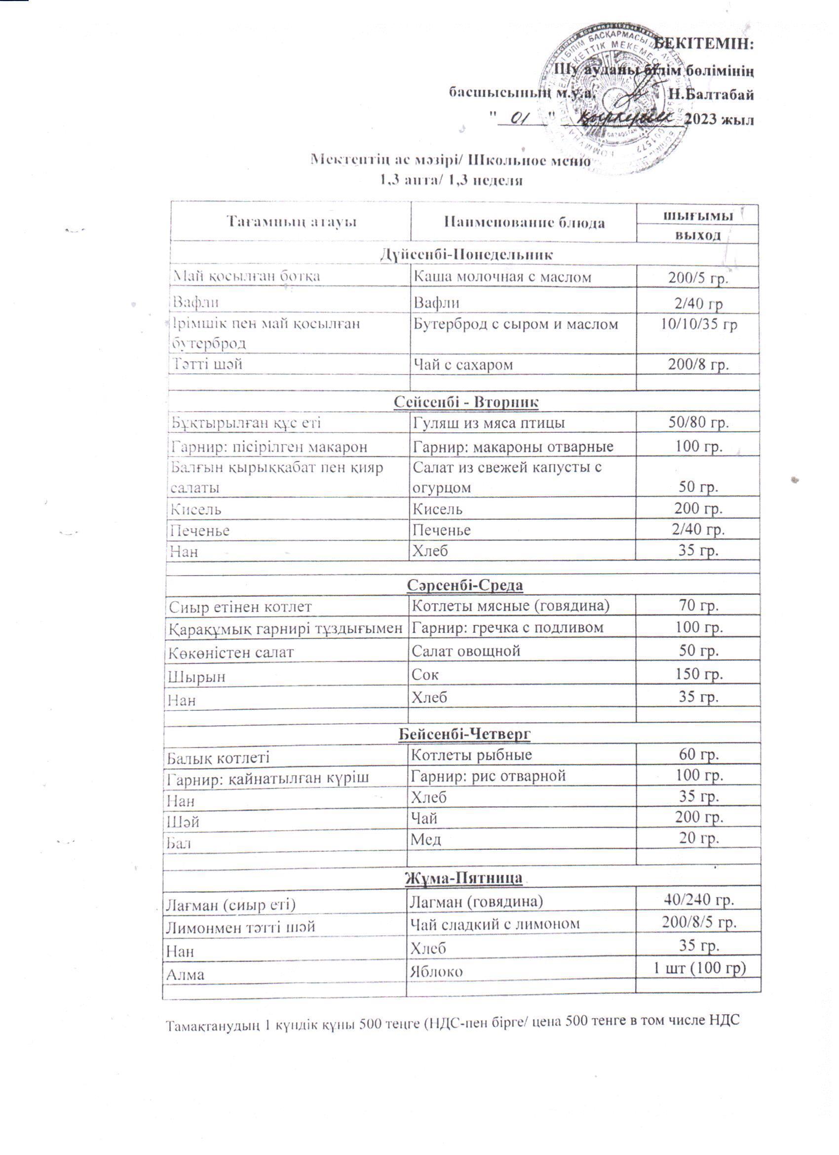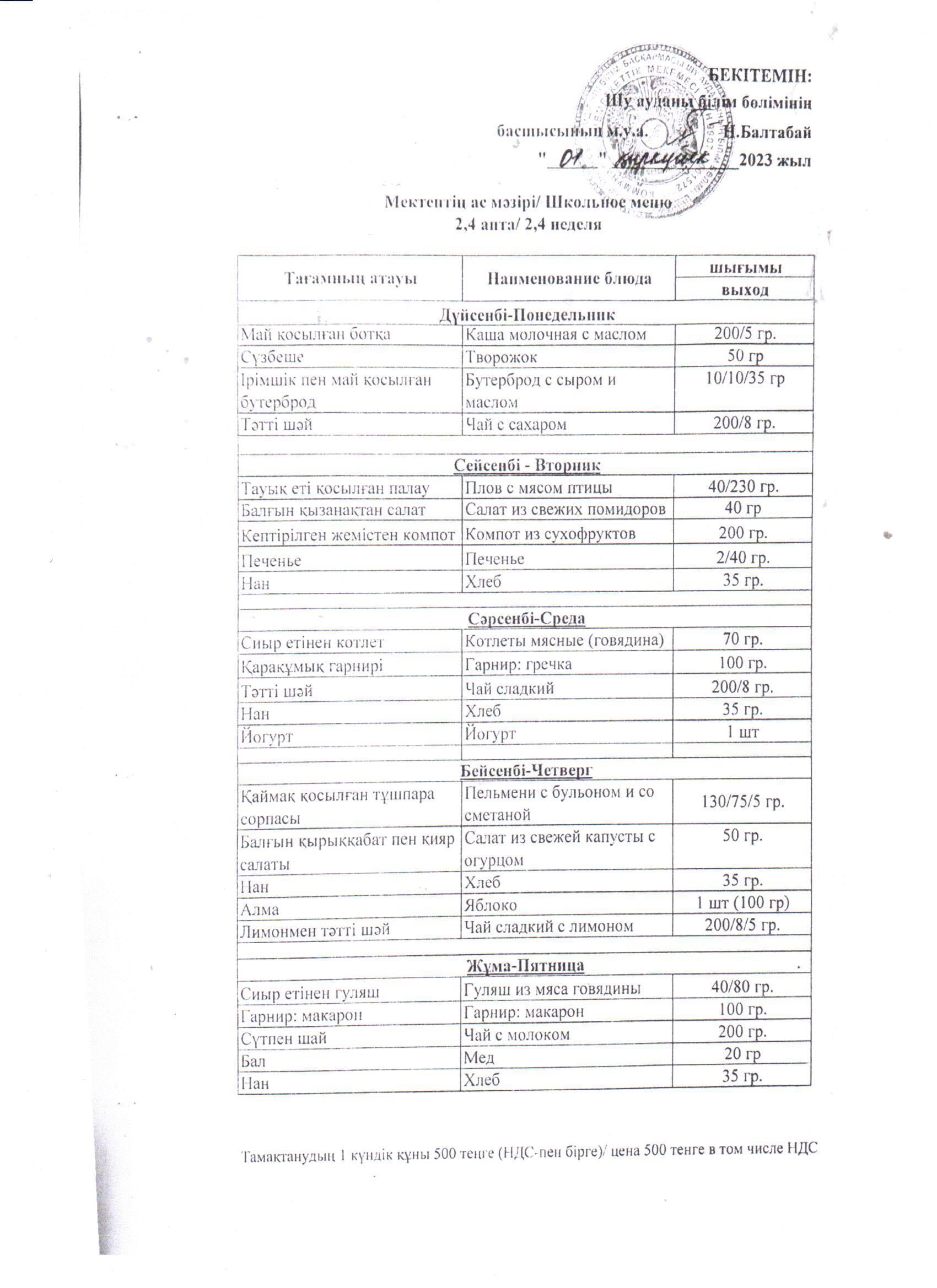 А.С.Макаренко атындағы орта мектебі » МЕКТЕП АСХАНАСЫ » 2023-2024 о/ж бастауыш 1-4 сынып және жекелеген санаттағы білім алушылар мен тәрбиеленушілерді бір мезгіл тегін және жеңілдетілген тамақтануды ұйымдастыру