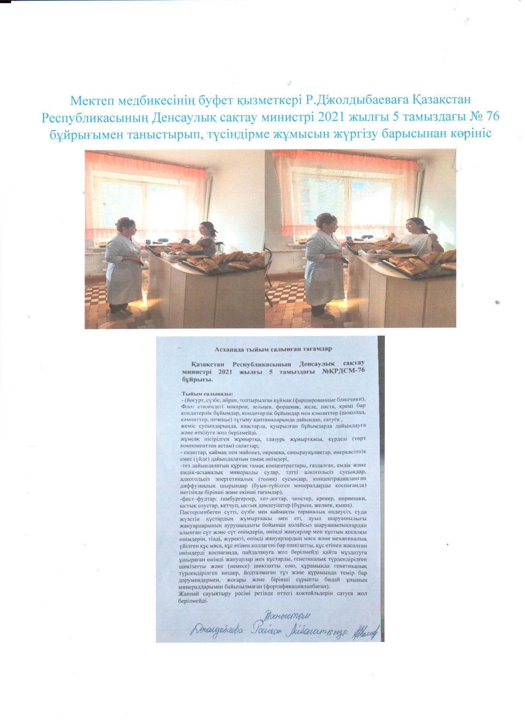 » » Мектеп медбикесінің буфет қызметкеріне ҚРДСМ 2021 ЖЫЛҒЫ №76 бұйрығымен таныстыру