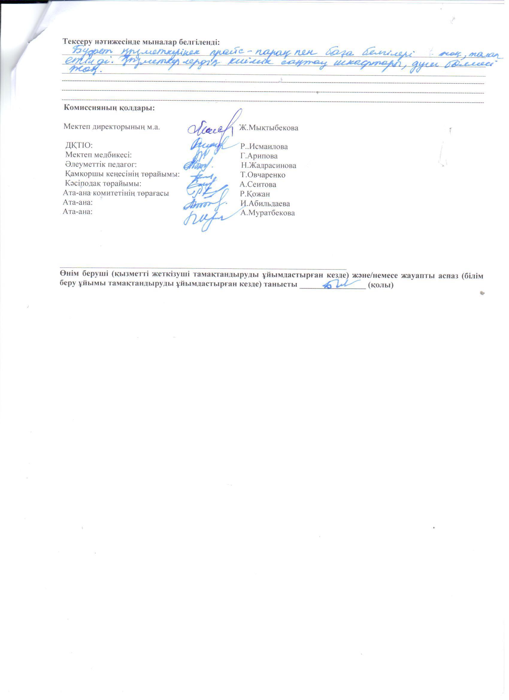 » » Тамақтану сапасына мониторинг жүргізу актісі