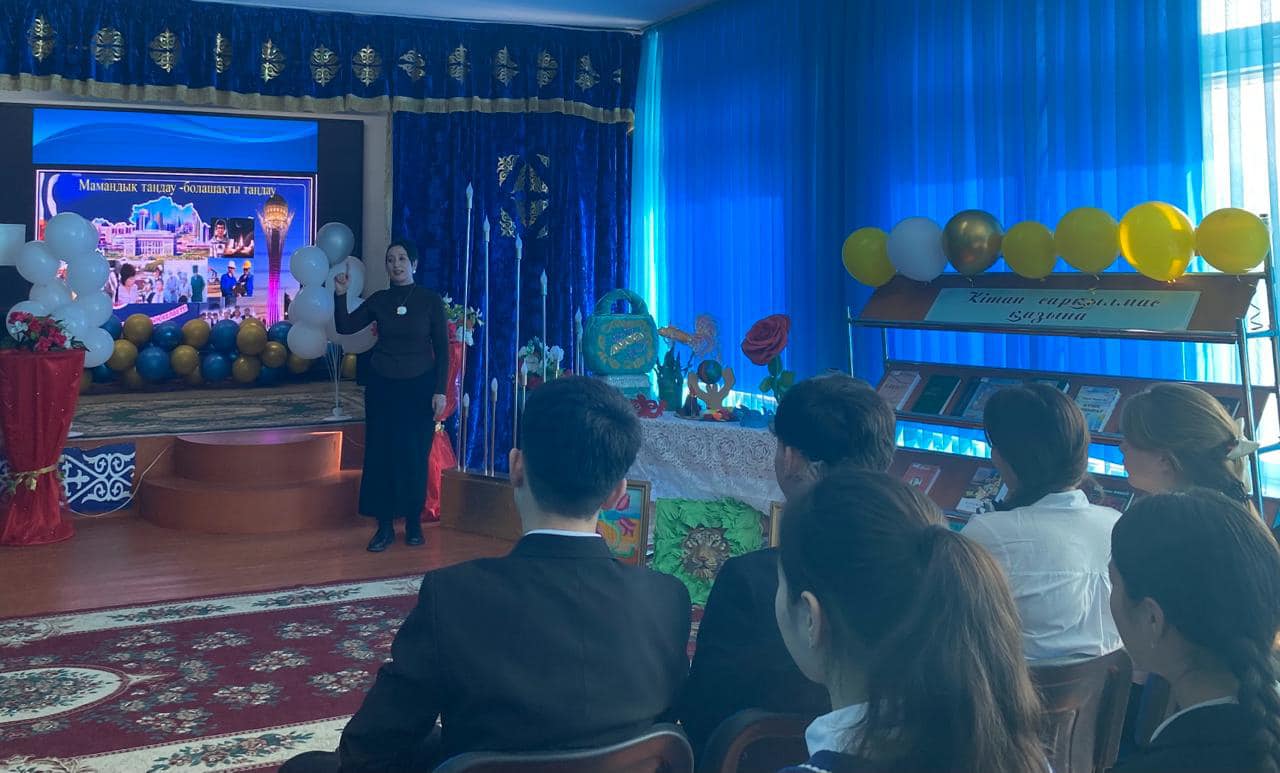 Мақсаты: Оқушыларға болашақта мамандық таңдауда дұрыс бағыт-бағдар бере отырып, Қазақстанда орналасқан оқу орындарымен таныстыру.