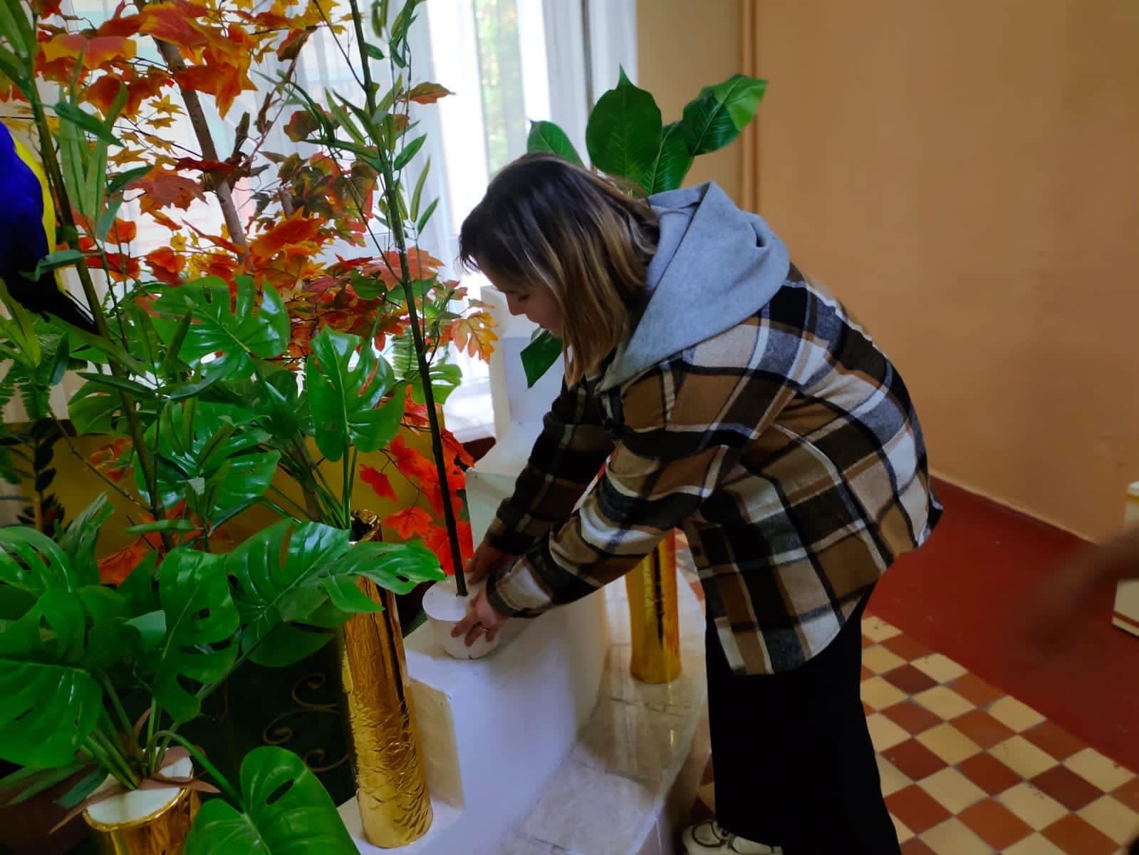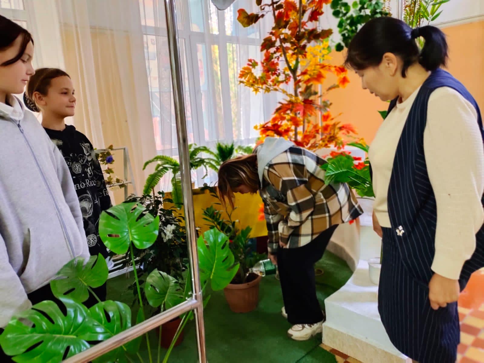 Антон Семенович Макаренко атындағы орта мектебінде мектеп экологы Бекбосынова М күзгі демалыс кезінде оқушылармен бірге мектеп дәлізіндегі гүлдерге күтім жасап, су құйып, тазалығына мән беріп отырады.