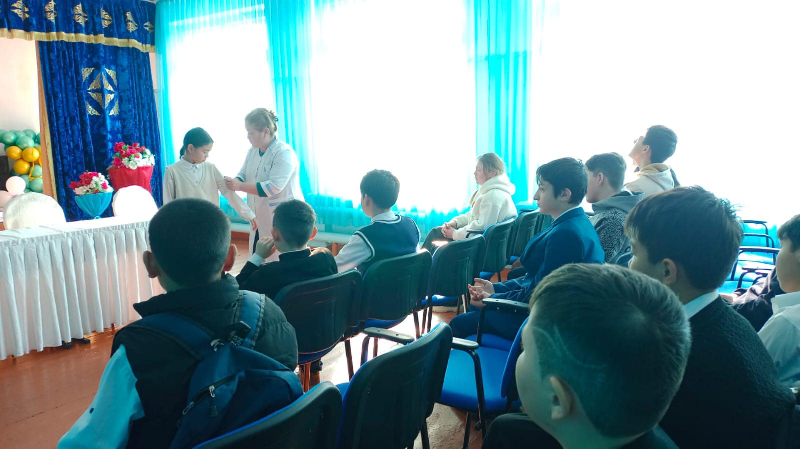 24 январь 2024 0 1 2 3 4 5 “Бала денсаулығы ұлт денсаулығы” тақырыбында 5-10 сынып оқушыларымен жиналыс өткізді. А.С.Макаренко атындағы орта мектебінде мектеп медбикесі “Бала денсаулығы ұлт денсаулығы” тақырыбында 5-10 сынып оқушыларымен жиналыс өткізді.Мақсаты: Салауатты өмір салтын насихаттап, бала денсаулығын нығайту бойынша тәрбие беру.