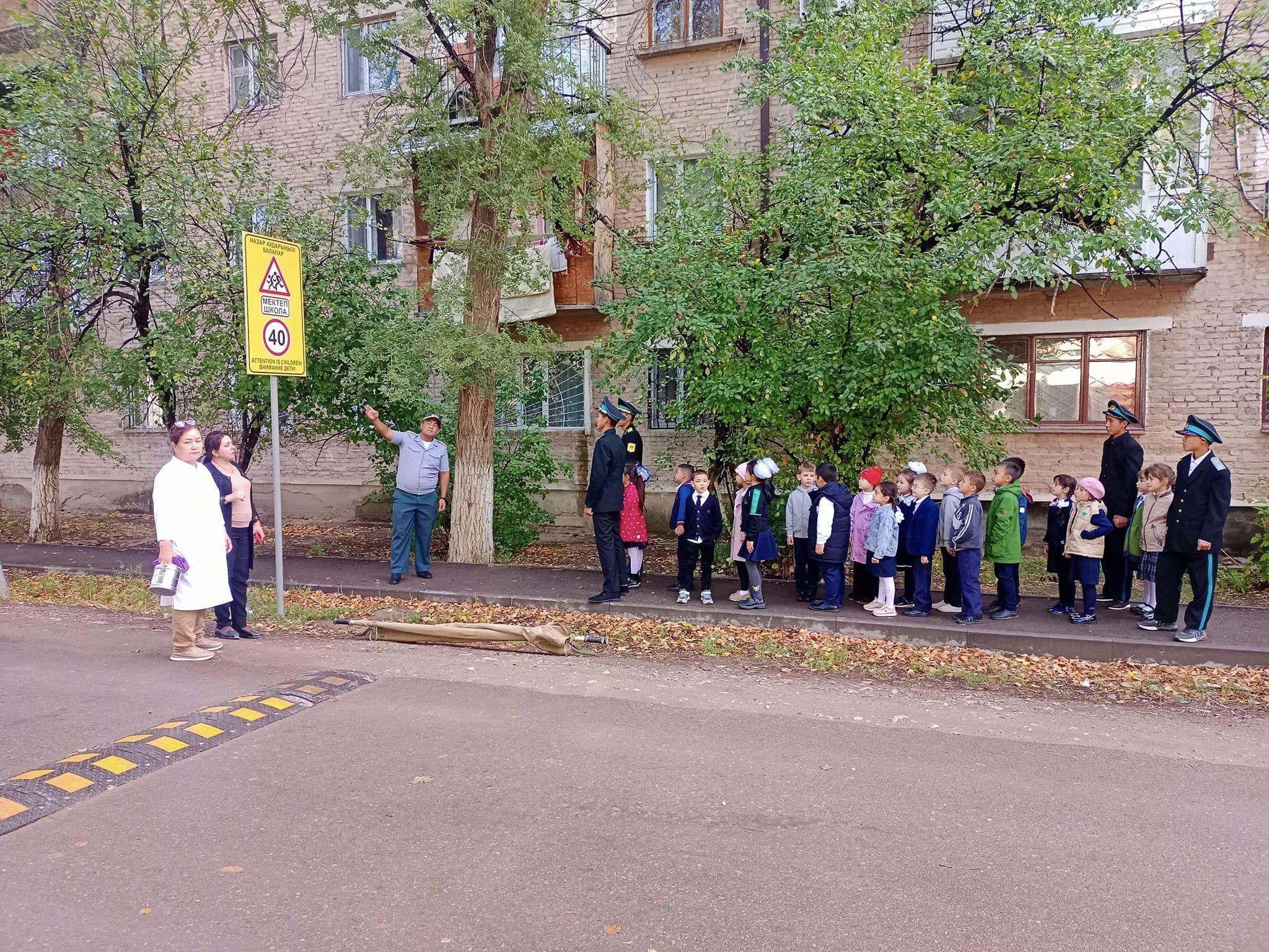А.С.Макаренко атындағы орта мектебі бойынша Құқықтық тәрбие жоспарына және Жас полиция көмекшілерінің жоспары мен Қауіпсіздікті қамтамасыз ету жоспарына сәйкес ДҚТІЖО мен БӘД пәнінің мұғалімі нің ұйымдастыру ымен "Жас полиция көмекшілері" жасағы 1 сыныптың оқушыларымен "Жол ережесін біліп жүр ,балақай !"тақырыбында практикалық сабақ көрсетіп,түсіндірме жұмысын жүргізсе,БӘД пәнінің мұғалімі жол белгілермен таныстырып өтті.Іс-шараның мақсаты: Түрлі жағдайда күйзеліске,дүрбелеңге берілмеу, қоғамдық ортада өзін дұрыс ұстау мәдениетін қалыптастыру.