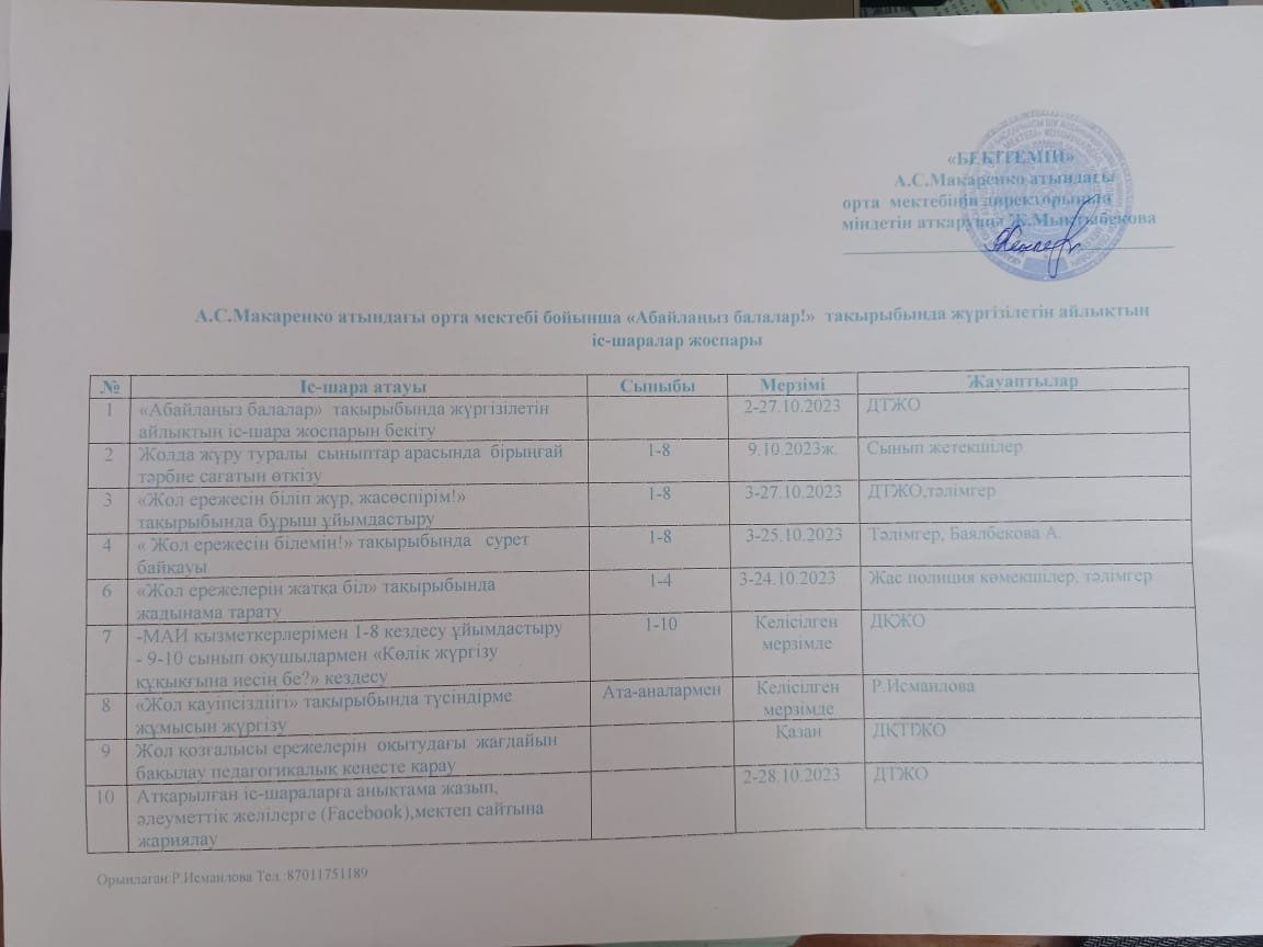 Абайлаңыз, балалар айлығын өткізу туралы » «Жамбыл облысы әкімдігінің білім басқармасы Шу ауданының білім бөлімінің «Антон Семенович Макаренко атындағы орта мектебі» коммуналдық мемлекеттік мекемесі