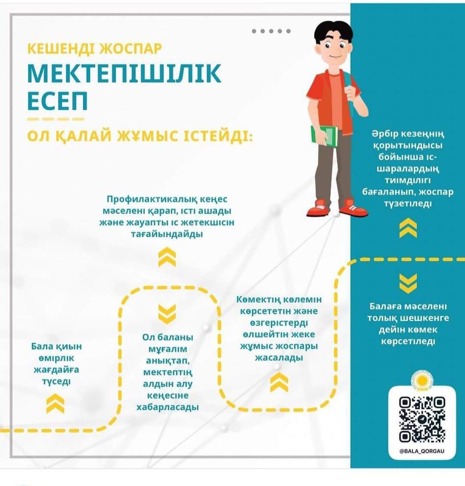 Комитет кешенді жоспар шеңберінде жоғары педагогикалық назар аударуды және оларға уақтылы әлеуметтік және психологиялық-педагогикалық көмек көрсетуді талап ететін білім алушыларды ерте анықтау мақсатында мектепішілік есепке алуды жүргізу тәртібін реттеді. Жаңа модель баланы қиын жағдайдан шығарудың жеке жоспары бойынша баланы кешенді сүйемелдеуге мүмкіндік береді.